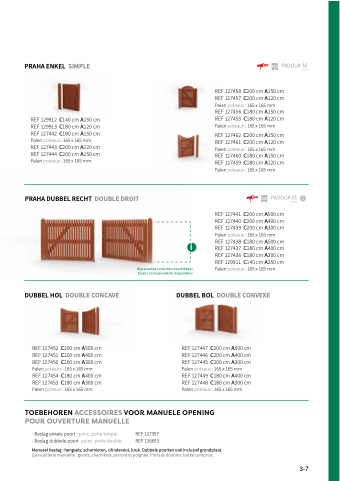 Manueel beslag : hengsels, scharnieren, cilinderslot, kruk. Dubbele poorten ook inclusief grondplaat.
