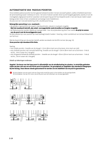 • voor de geautomatiseerde dubbele poorten : : breedte van de vleugel + 65mm (25mm kant van scharnieren - links &