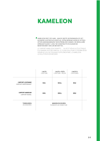 KAMELEON PAST ZICH AAN... AAN DE GROTE GEZINSWAGEN OF HET KLEINERE ELEKTRISCHE VOERTUIG. EXTRA BERGING VOOR DE FIETSEN OF EEN AANHANGWAGEN? GEEN PROBLEEM. DANKZIJ DE MODULAIRE OPBOUW PUZZELT U ZELF DE CONSTRUCTIE IN ELKAAR DIE BEANTWOORDT AAN UW BEHOEFTES.