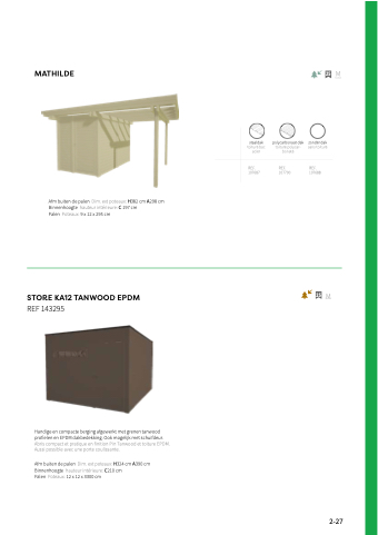 Handige en compacte berging afgewerkt met grenen tanwood profielen en EPDM dakbedekking. Ook mogelijk met schuifdeur. Abris compact et pratique en finition Pin Tanwood et toiture EPDM. Aussi possible avec une porte coulissante.