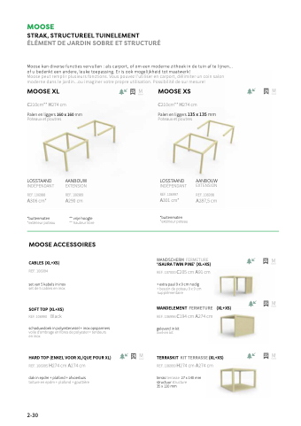 Moose kan diverse functies vervullen : als carport, of om een moderne zithoek in de tuin af te lijnen... of u bedenkt een andere, leuke toepassing. Er is ook mogelijkheid tot maatwerk!