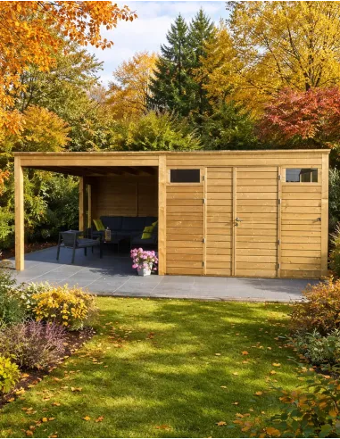 Pensé pour durer, cet abri est conçu en Sapin Rouge du Nord, un bois reconnu pour sa densité. Il bénéficie d'un traitement imprégné autoclave vert de Classe 4 (C4), lui conférant une résistance exceptionnelle contre l'humidité, les insectes et les intempéries, même en contact prolongé avec l'extérieur.