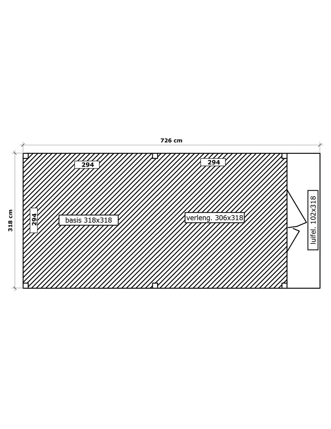 Dimensions de base : 318 x 624 cm
