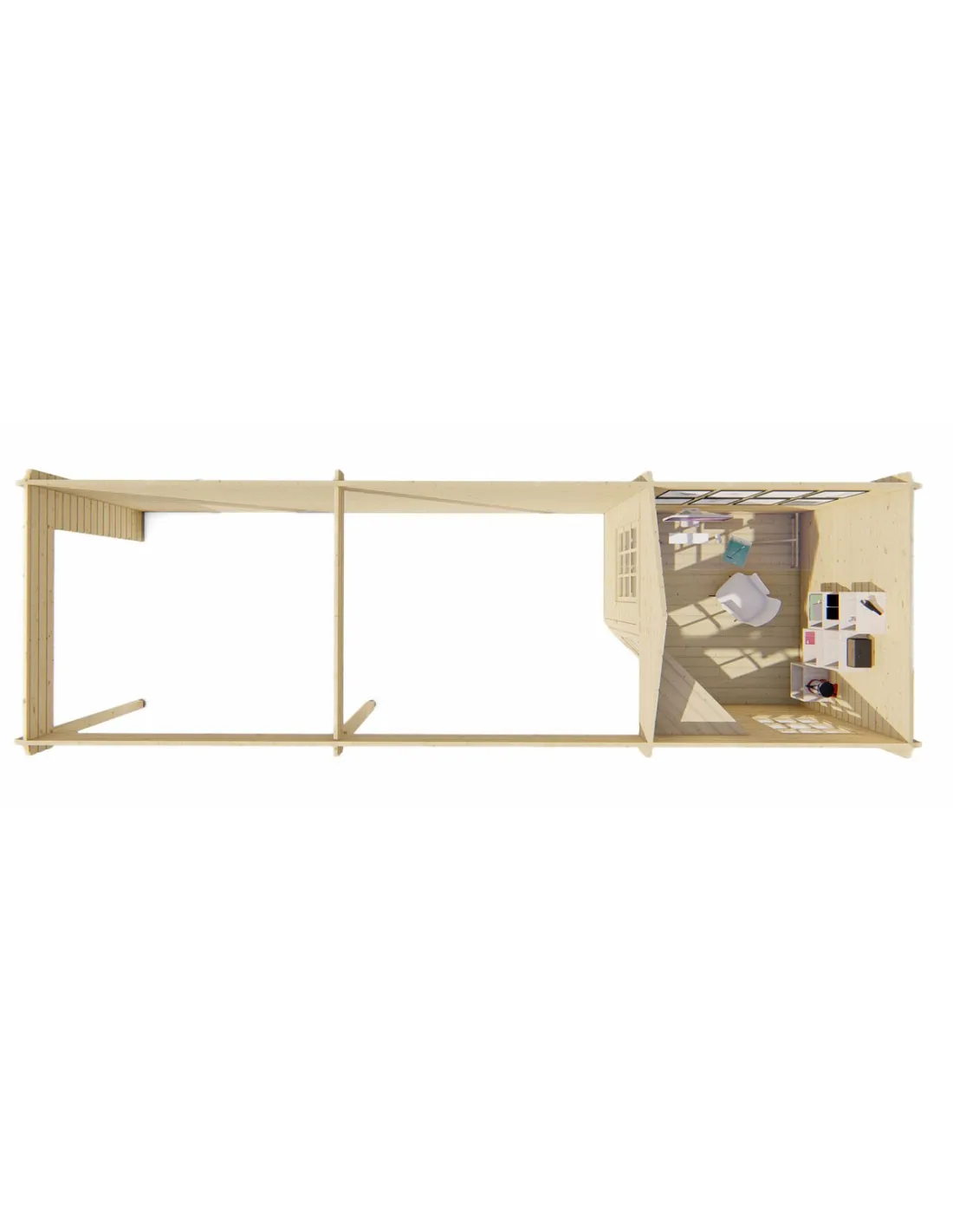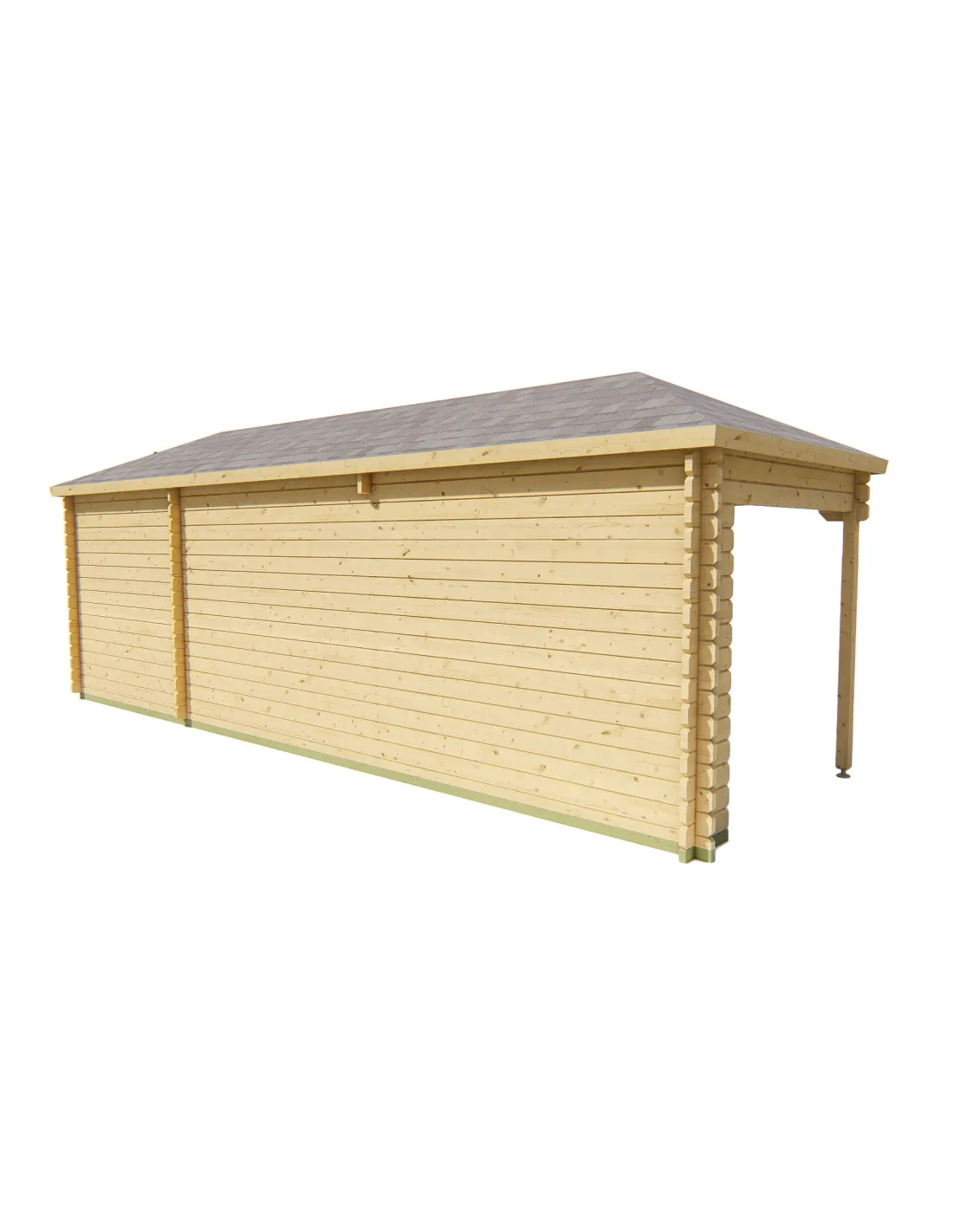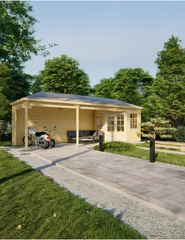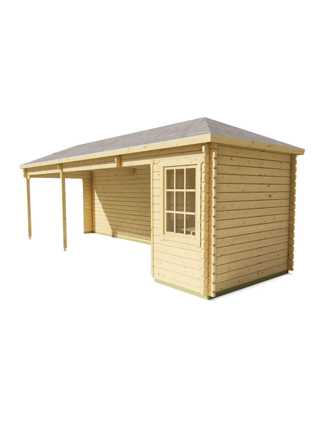 Son magnifique toit en croupe (à 4 pans) apporte une touche de charme indéniable à votre extérieur. Très pratique, l'architecture de cet abri est modulable : le montage peut être inversé (effet miroir), vous permettant de placer le grand auvent de 12,4 m² du côté qui s'adapte le mieux à l'agencement de votre terrain.