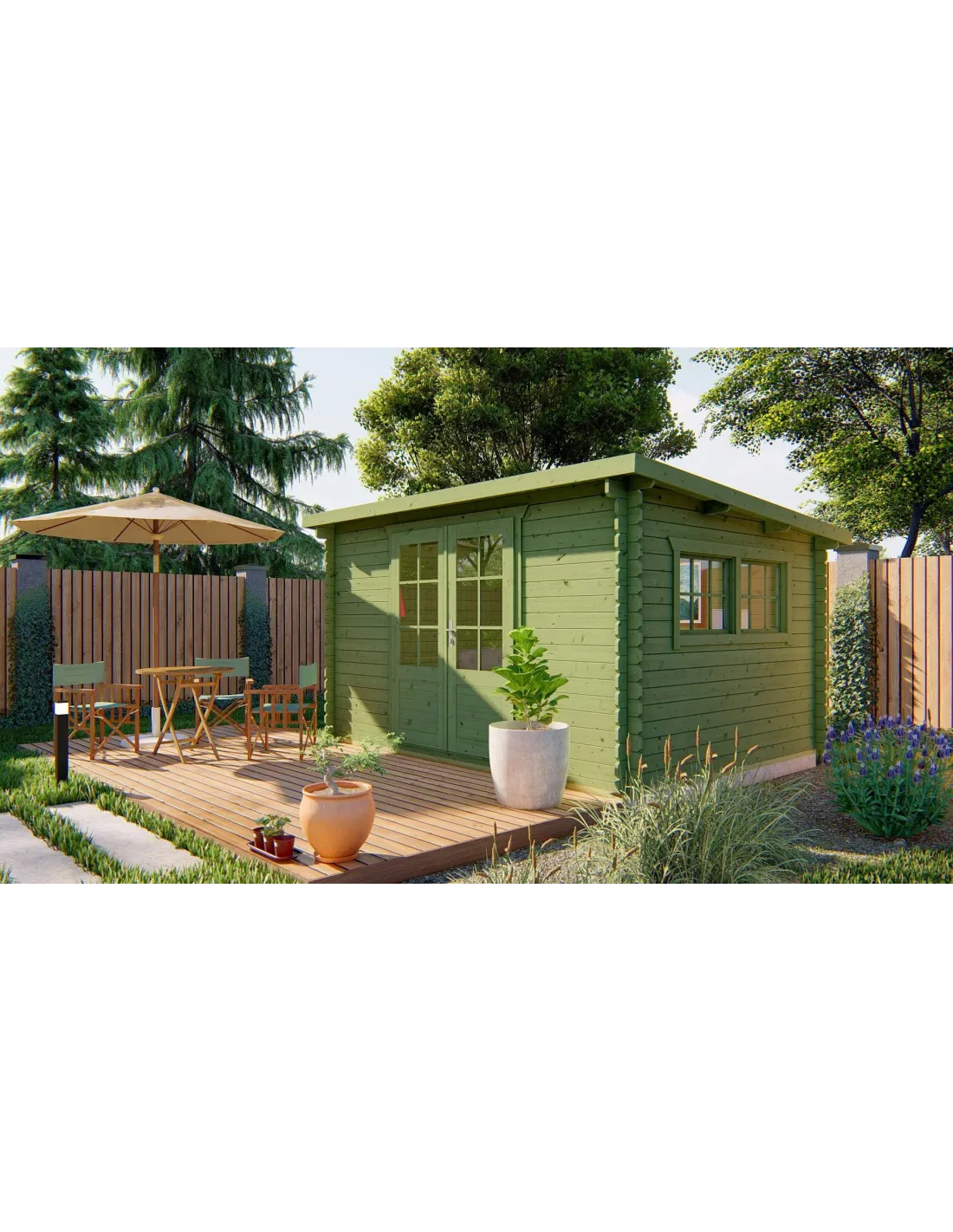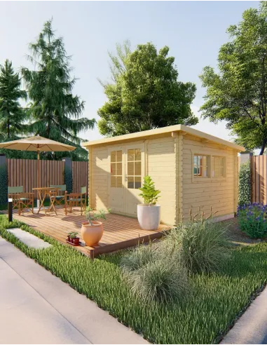 Abri de jardin en bois avec double porte vitrée et fenêtres 380 x 300 cm - 28 mm - ±10 m2