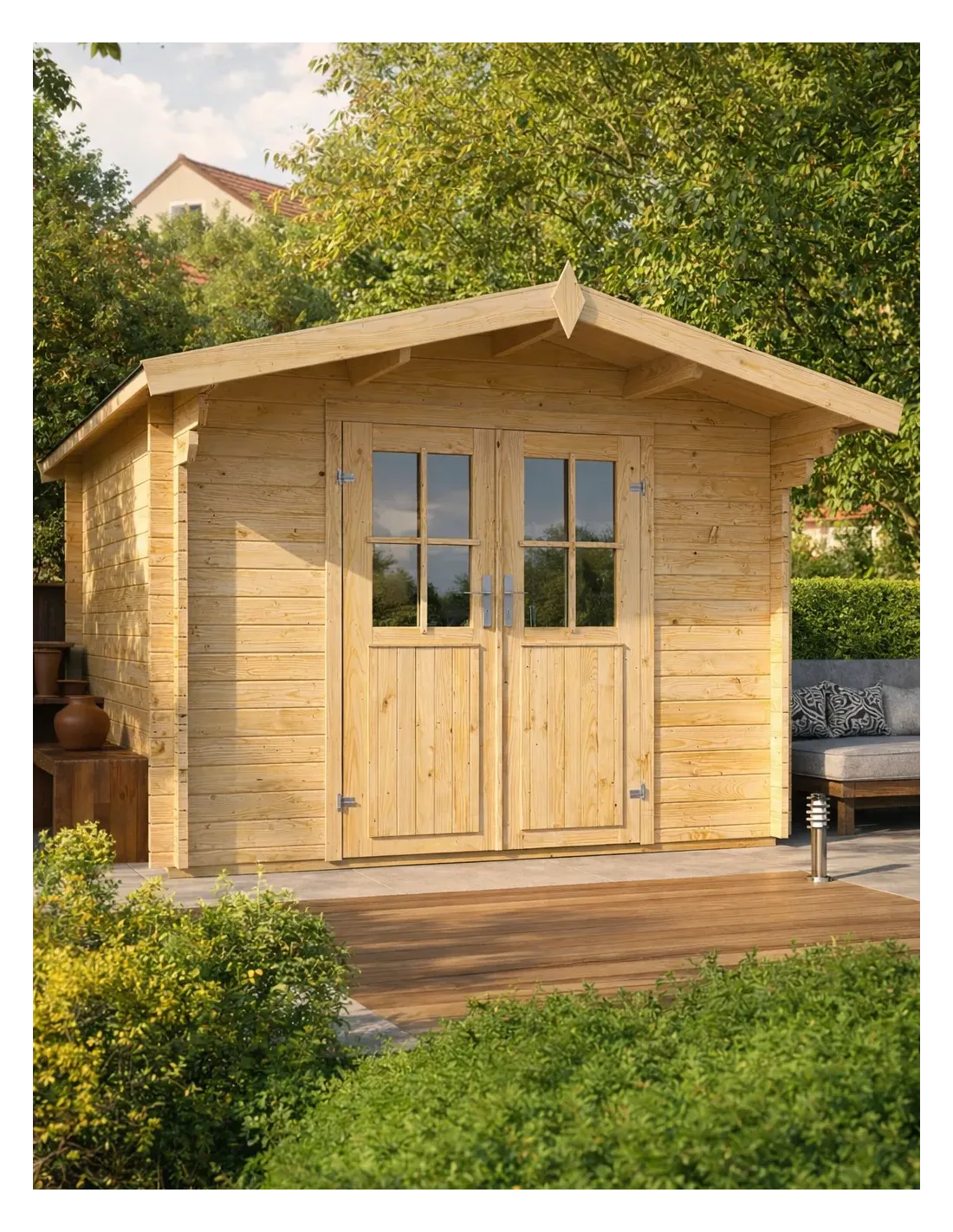 Transformez votre jardin en un véritable espace de vie extérieur qui rehausse votre propriété et votre style de vie. Fabriqué en sapin de haute qualité, traité ou non traité, avec une finition rabotée pour une apparence lisse et professionnelle, l'abri Meerbeek est construit pour durer. Les murs épais de 34 mm offrent une isolation optimale et une solidité à toute épreuve, tandis que la hauteur sous faîtage de 236 cm crée un intérieur spacieux et aéré de 15,8 m³.