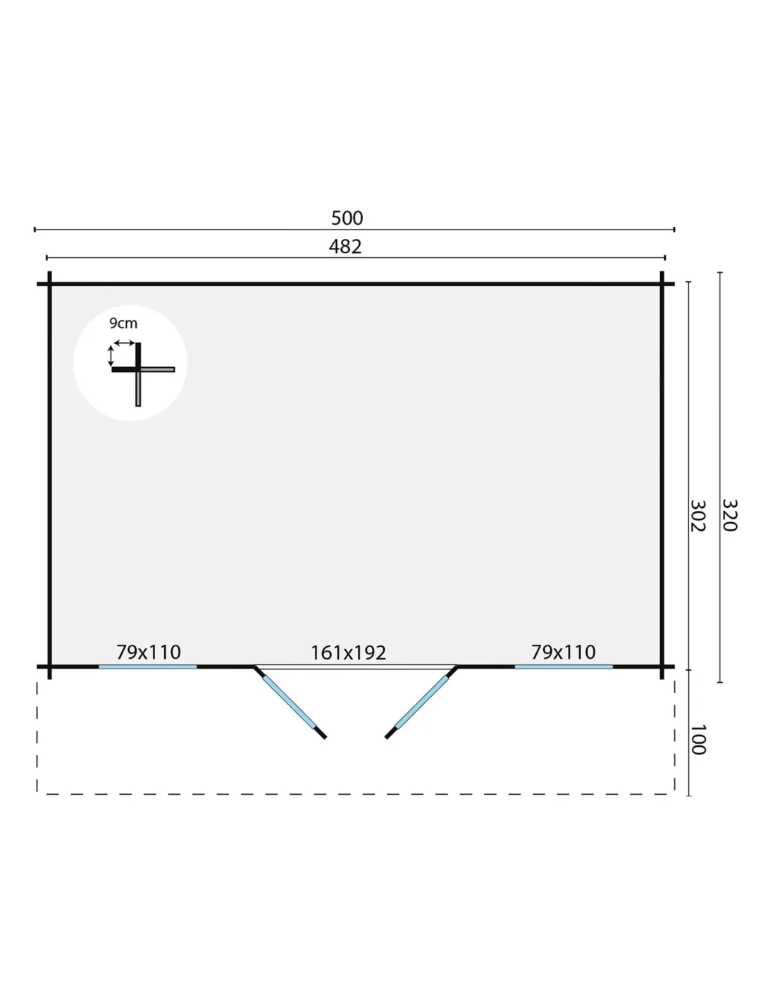 Abri de jardin Schaerbeek 500 x 320 cm - 28 mm - ±14 m2