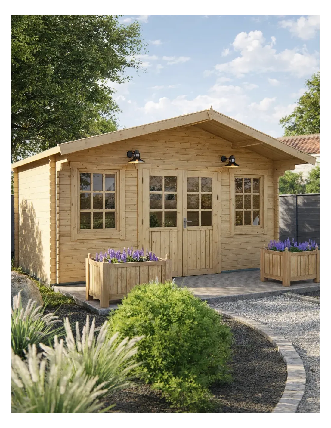 • Épaisseur des murs : 28 mm pour une isolation et une durabilité supérieures, pensées spécialement pour vous.