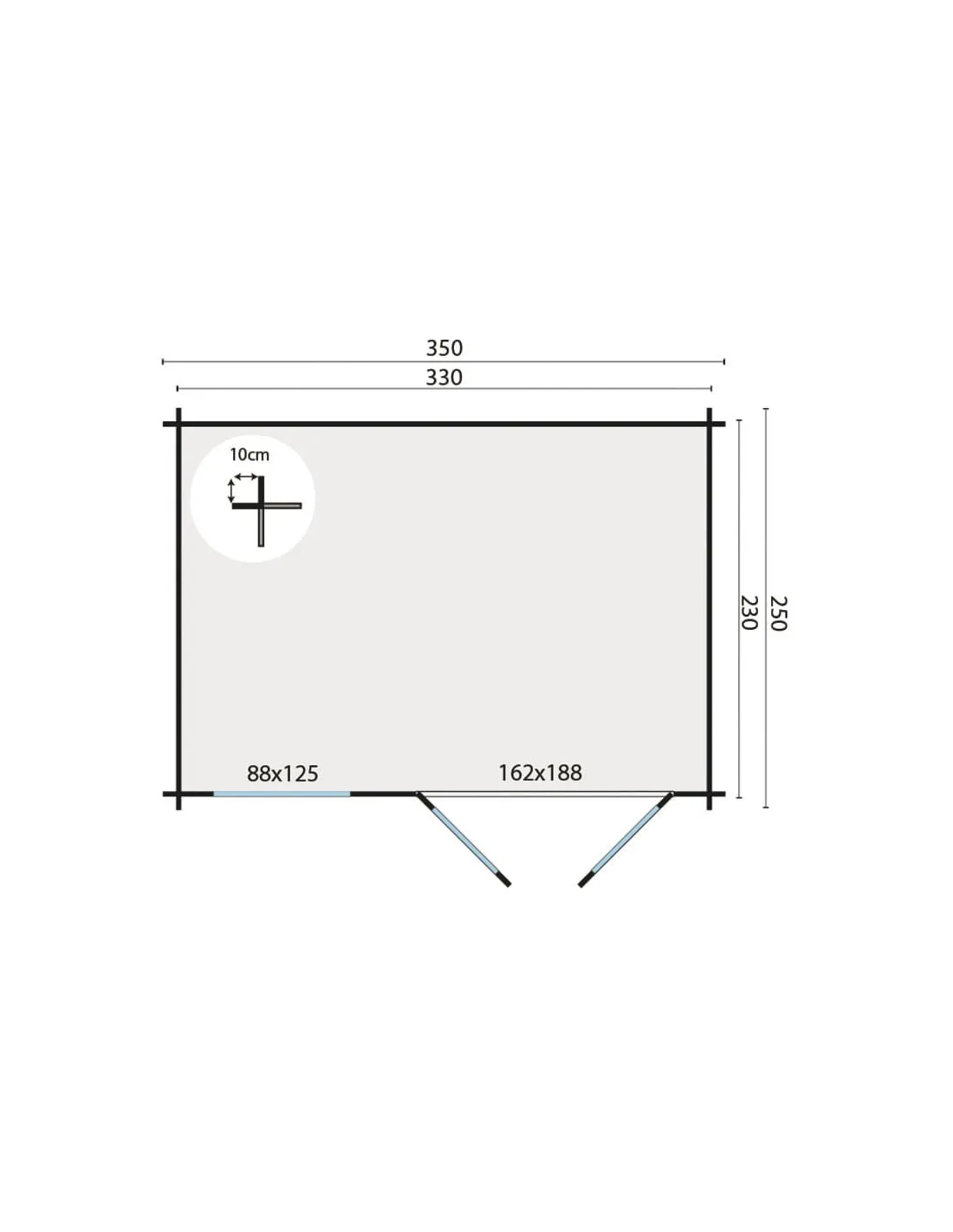 • Dimensions extérieures : Largeur 3,50 m x Profondeur 2,50 m