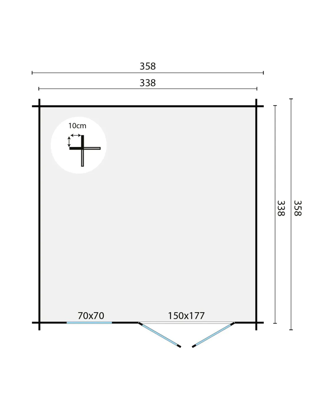 • Dimensions au sol : 340 x 340 cm (Fondation)