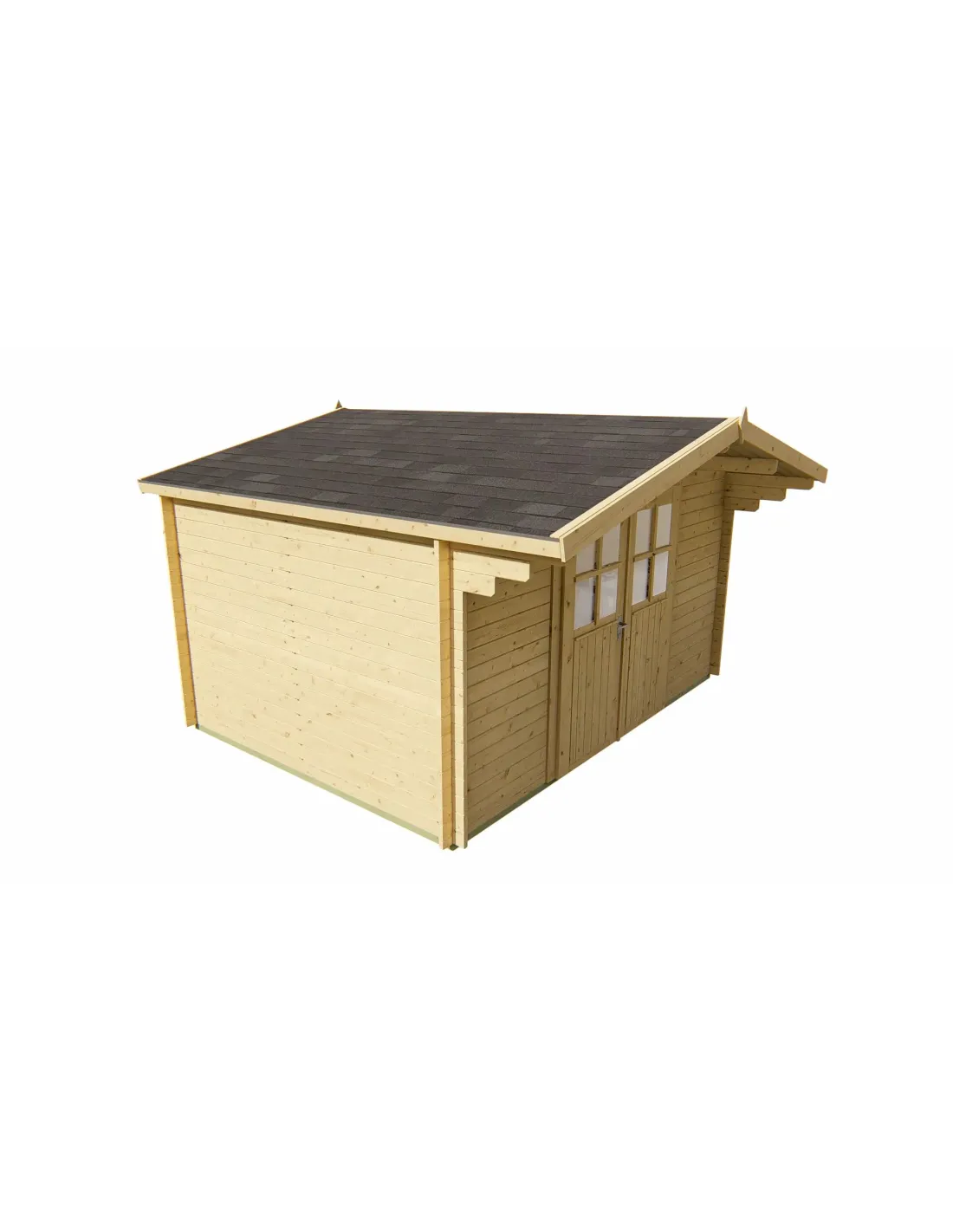 L'abri de jardin Vrebos est un témoignage du savoir-faire et du souci du détail. Sa construction robuste, disponible en pin traité ou non traité, garantit une durabilité longue durée tout en conservant une apparence charmante et naturelle qui complémente tout jardin ou cour. Le toit incliné, couvert de bardeaux, dirige efficacement l'eau de pluie loin de la structure, protégeant vos biens des éléments naturels.