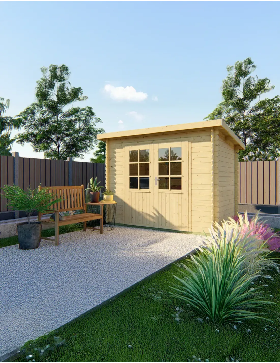 Découvrez l'abri de jardin Wemmel, la cabane en bois idéal pour ceux qui cherchent style et fonctionnalité. Faite de sapin de 28 mm d'épaisseur. Plus qu'un espace de rangement, elle embellit votre jardin avec son toit incliné et ses doubles portes vitrées de 4 mm, permettant une luminosité naturelle et une vue dégagée. Avec ses dimensions généreuses (217 cm de hauteur, 4,61 m² de surface au sol), elle offre un espace pour le stockage et le bricolage. Sa taille de 290 x 200 cm et fondation de 270 x 180 cm assurent une stabilité optimale. Le modèle Wemmel, sécurisé par une serrure à cylindre, est parfait pour garder vos outils en sécurité tout en apportant une touche élégante à votre environnement extérieur.