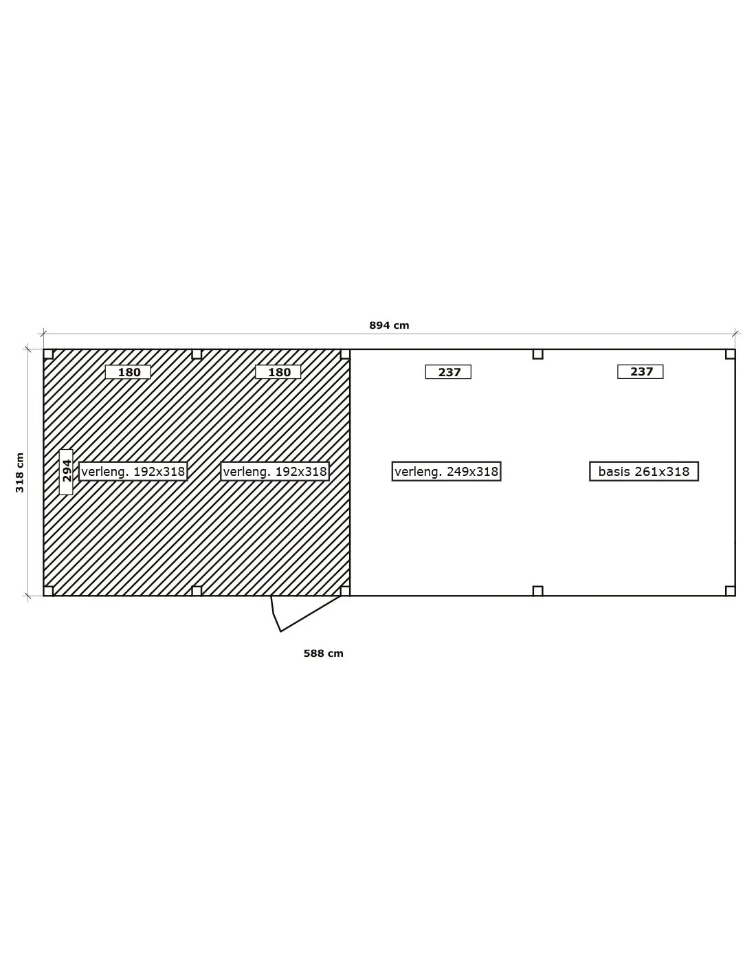 Dimensions hors tout : 894 cm x 318 cm