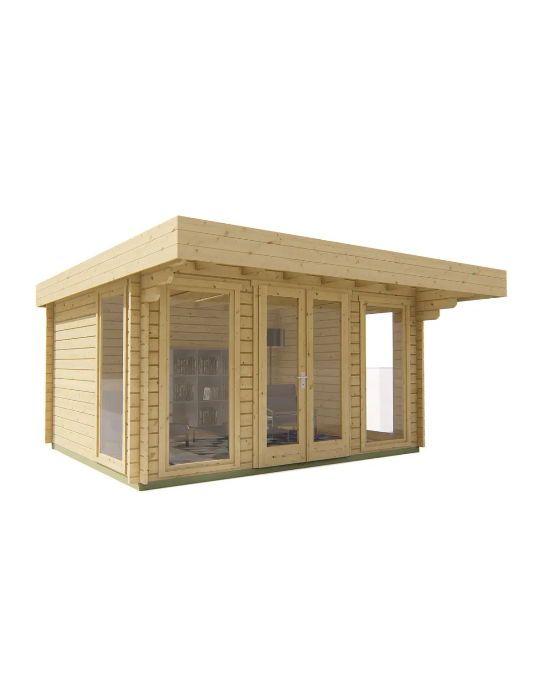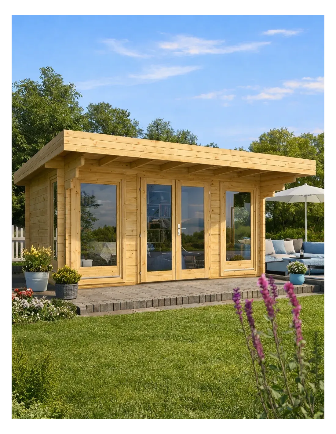 Fabriqué en Sapin Rouge du Nord, disponible en version traitée autoclave vert ou non traité, cet abri allie robustesse, isolation et esthétique. Son toit plat en aluminium Easy Roofing renforce son look moderne tout en assurant une excellente étanchéité.