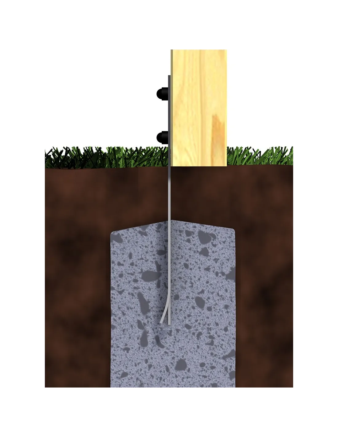 Utilisez les ancrages au sol SAFETY en acier plat pour bétonner de façon stable les poteaux de la tour de jeux.