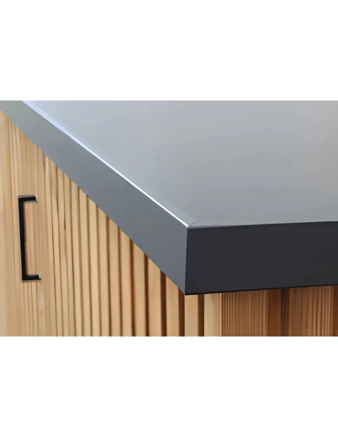 Toiture Performante: Toit fabriqué en plaques HPL, surmonté d'un bord de toit en aluminium noir élégant, assurant une protection optimale contre les intempéries.