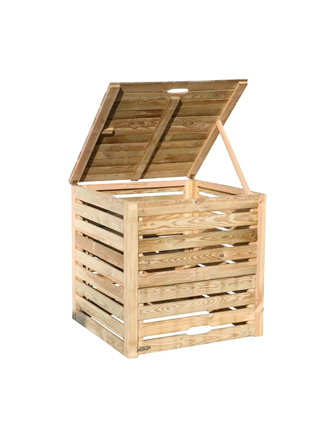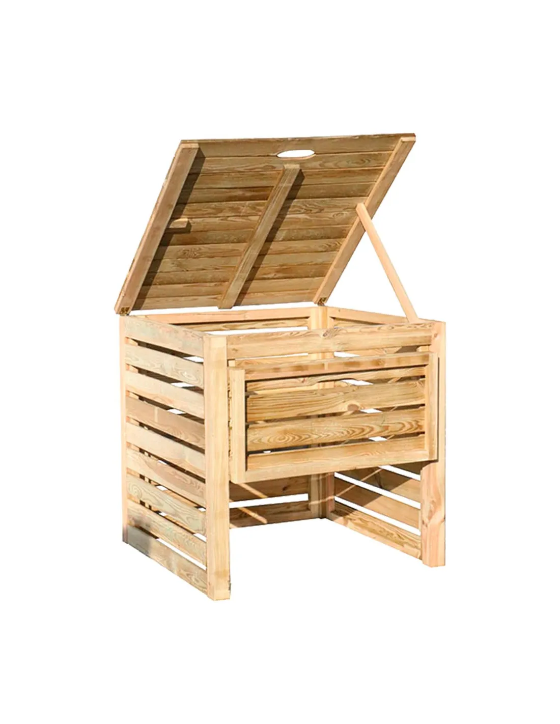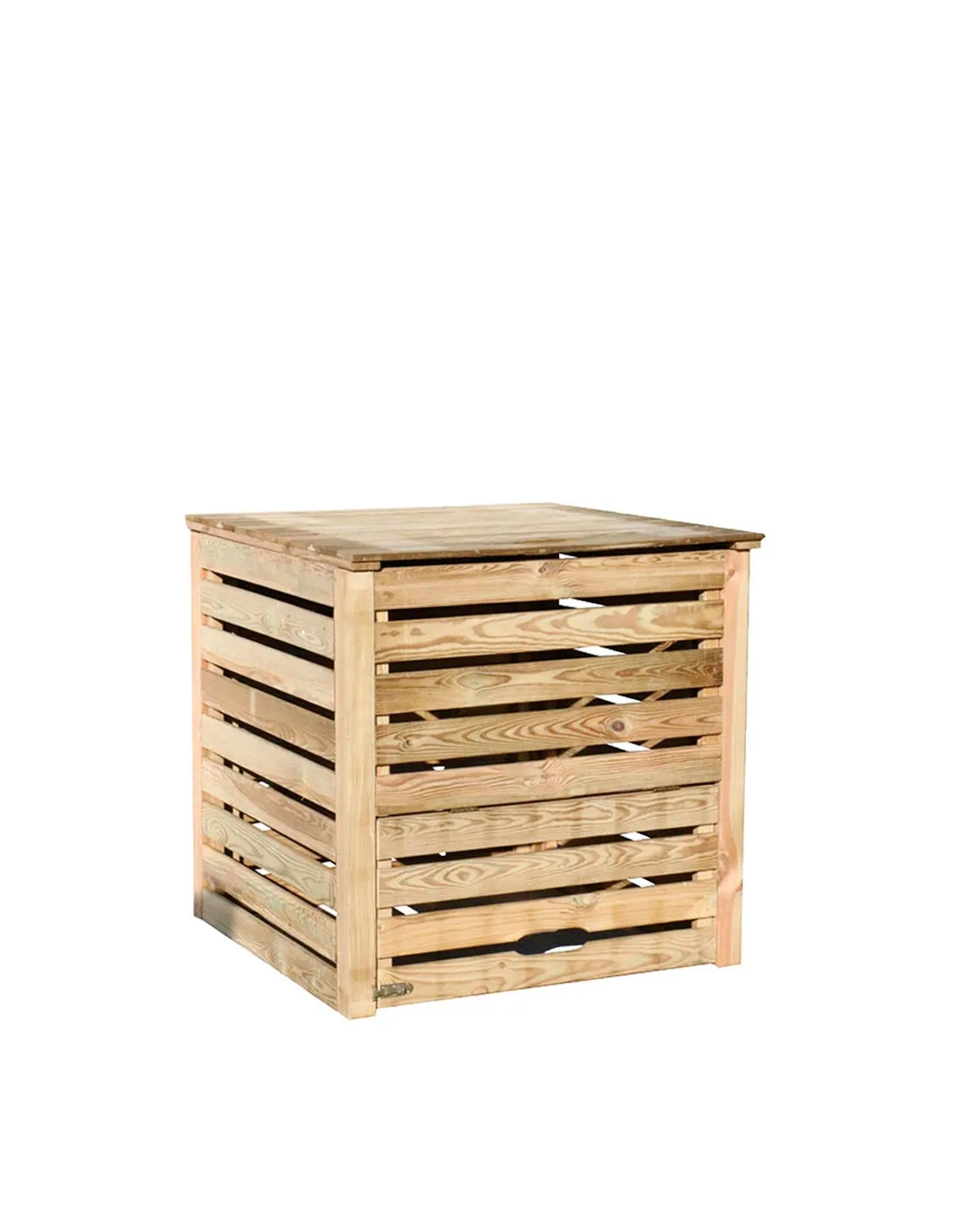 Ce bacs à compost en bois a ces dimensions : H 90 x 90 x 90 cm avec ouverture latérale.