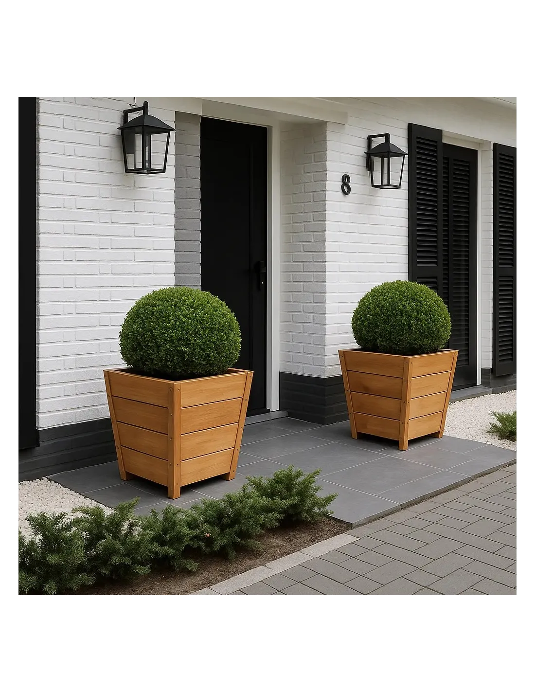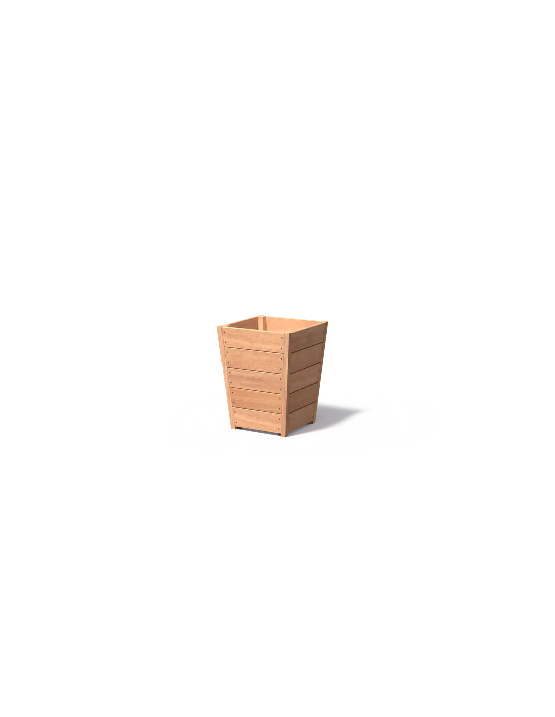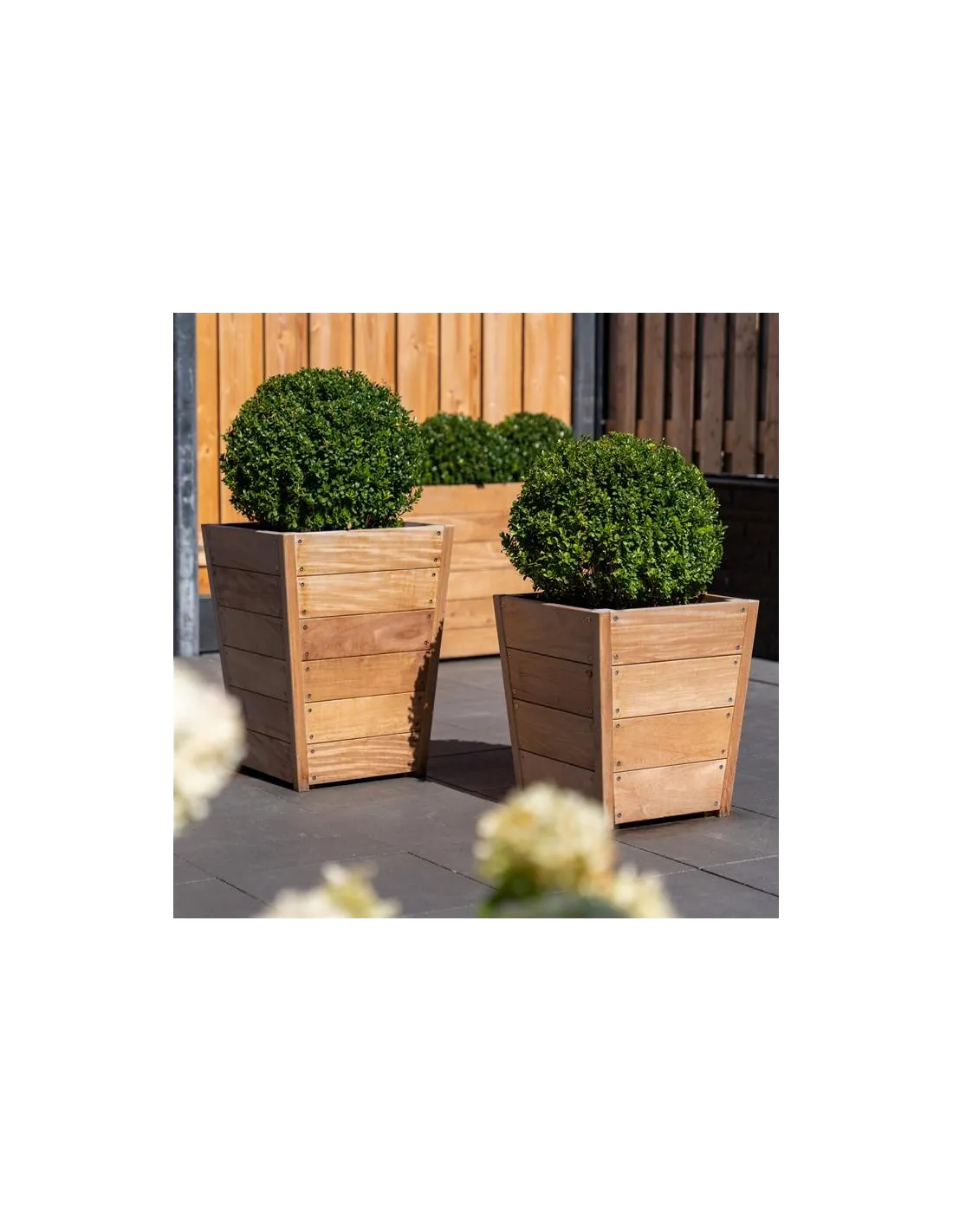 Nous proposons des jardinières en bois exotique sur mesure pour accueillir des petits arbustes comme du buis ou autres. Le modèle carré et conique de cette jardinière en bois exotique est très élégant et s'adaptera parfaitement à des projets comprenant des jardinières carrées.