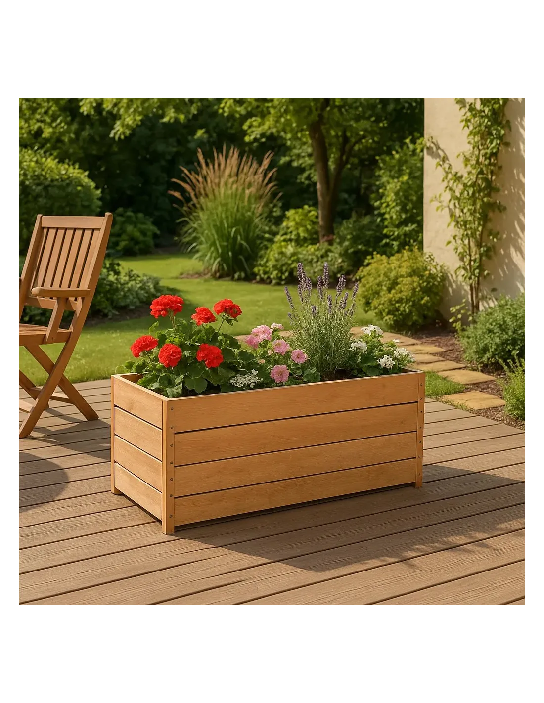 Bac à fleurs rectangulaire en bois exotique pour terrasse – Disponible en plusieurs dimensions