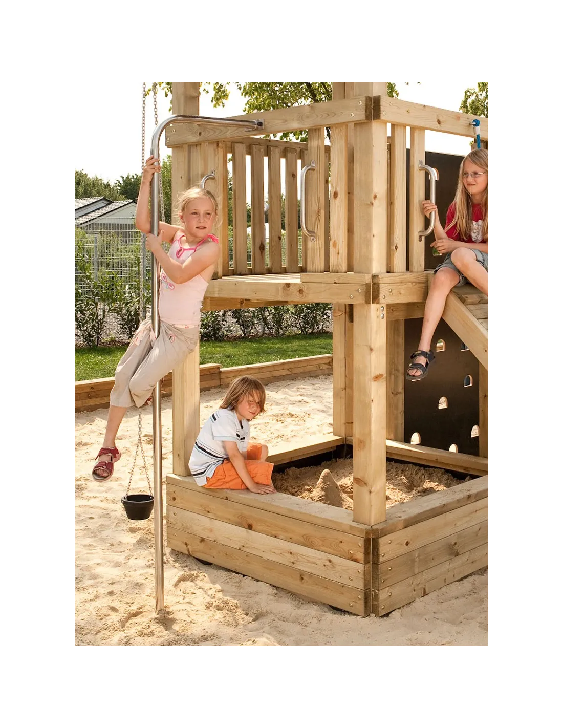Barre de descente de pompier en inox pour aire de jeux publics.