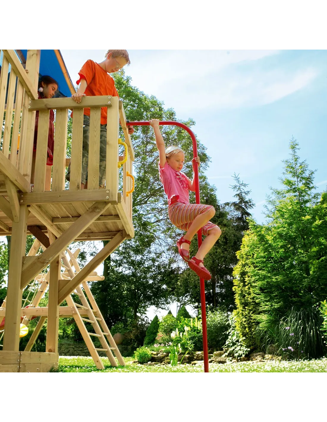Avec la barre de pompier montez et descendez à volonté autour de son axe. La barre de pompier peut être montée jusqu’à une hauteur de 250 cm. Elle doit être scellée. L’extrémité à sceller est en forme de fourche pour garantir un ancrage optimal dans le sol.