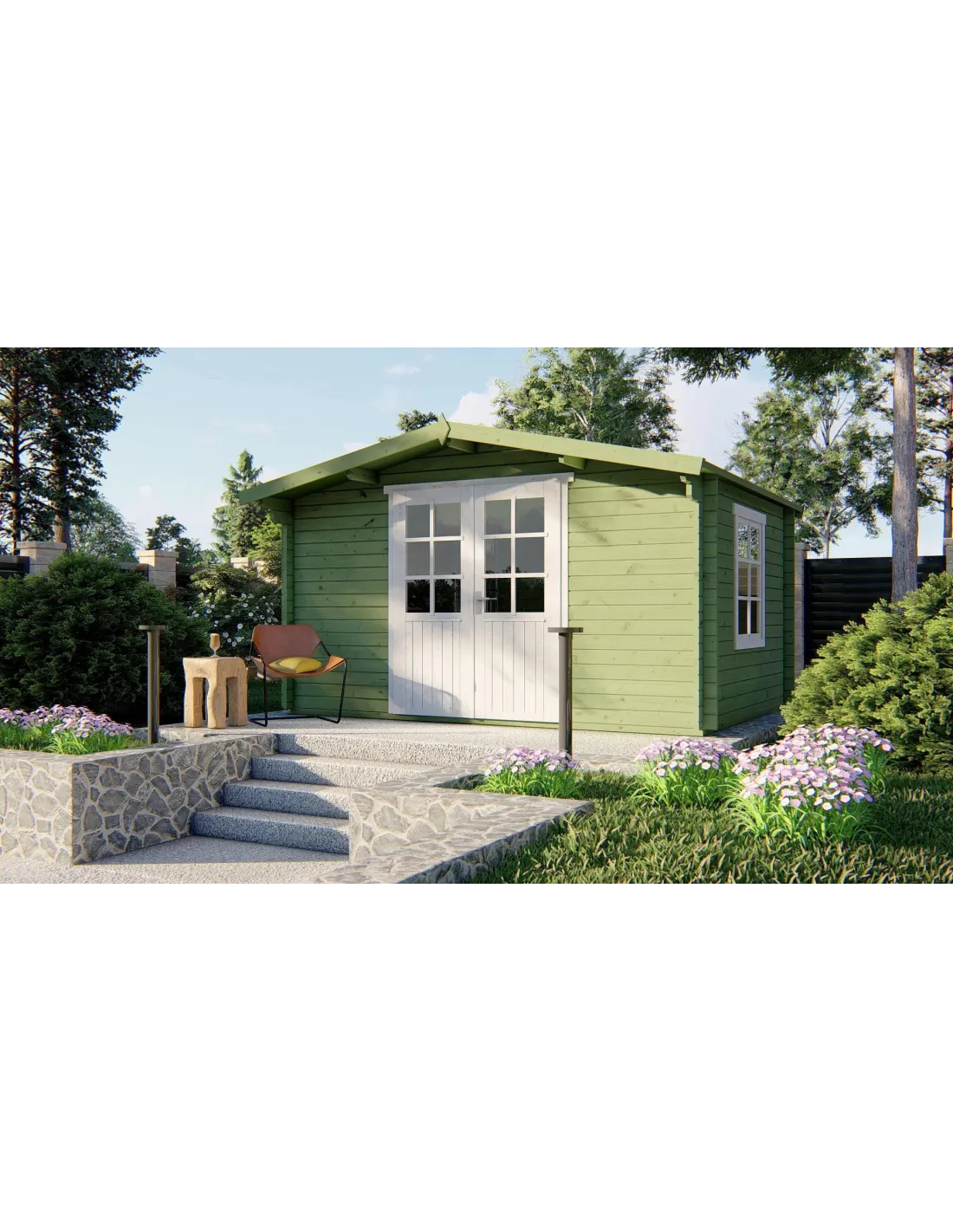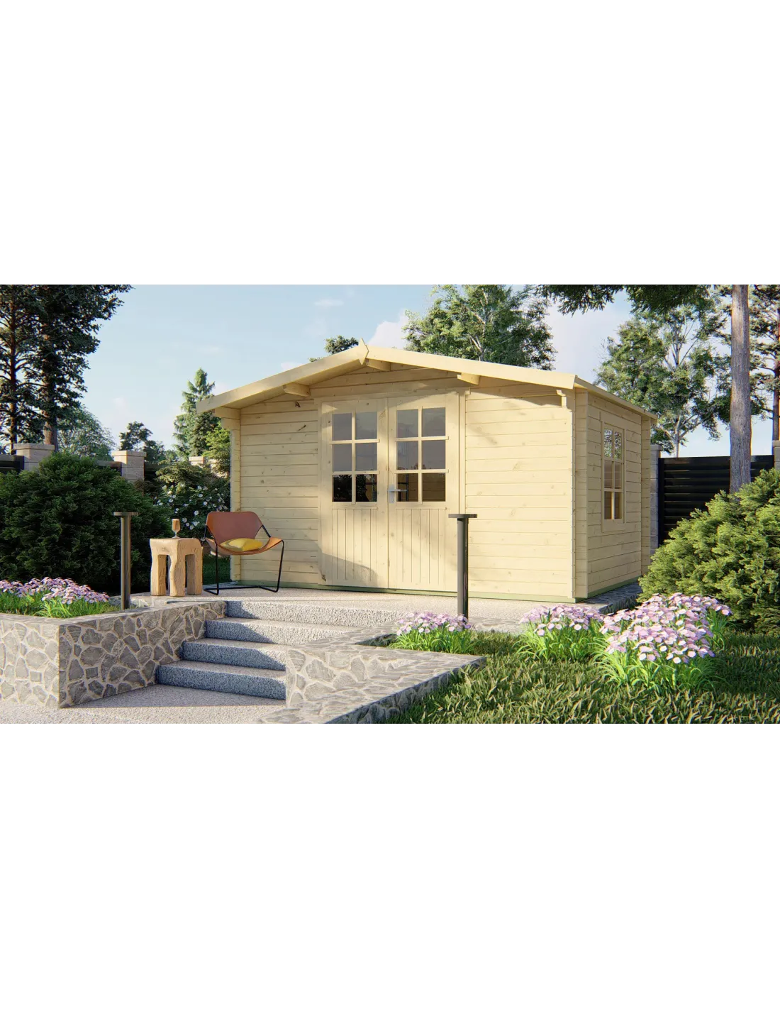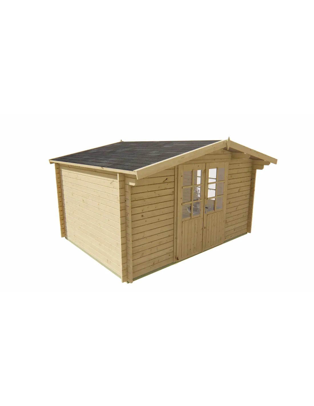 Chalet 4x3 m avec double porte vitrée et fenêtre
