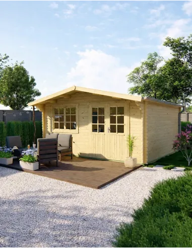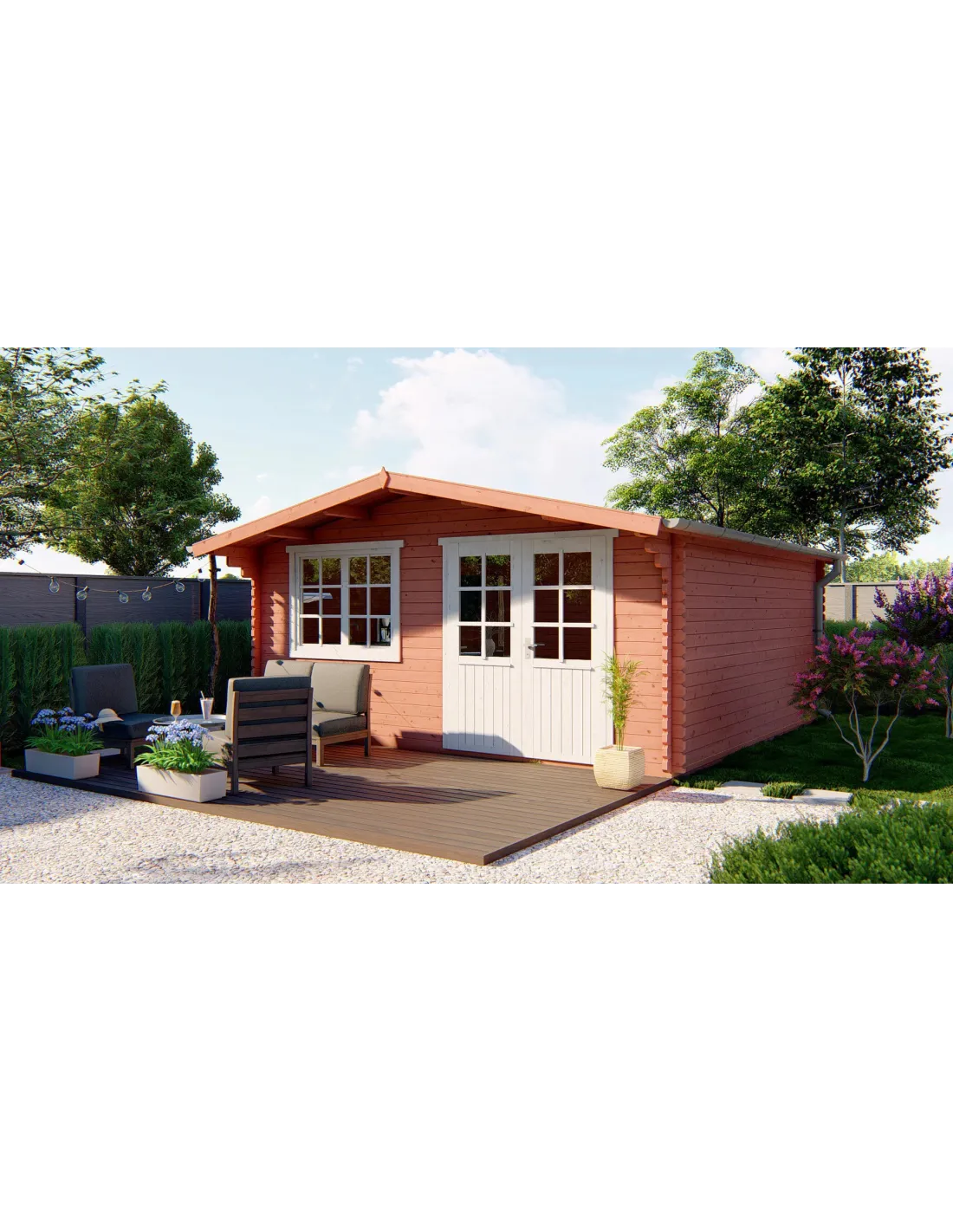 Chalet de jardin 5x5 m avec double porte vitrée et fenêtre