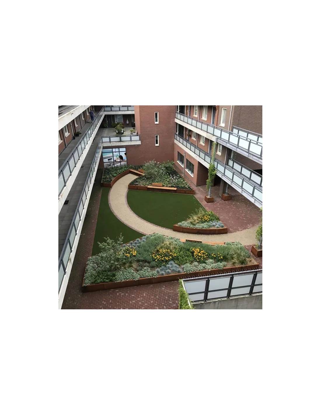 Bordure de soutien de terre en coin. Réalisée en acier corten.