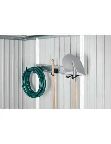 Jeu de crochets comprenant 2 double crochets, un crochet pour outil à manche et un rail à installer sur les 2 fixations verticales.