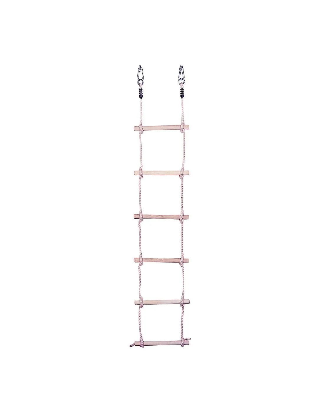 Personnalisez votre portique grâce à cet agrès échelle à cordes 6 échelons. D’une hauteur (longueur) de 250 cm, les enfants pourront se dépenser en montant et descendant les différents échelons. Conçue en bois et en corde, cette échelle est très solide.