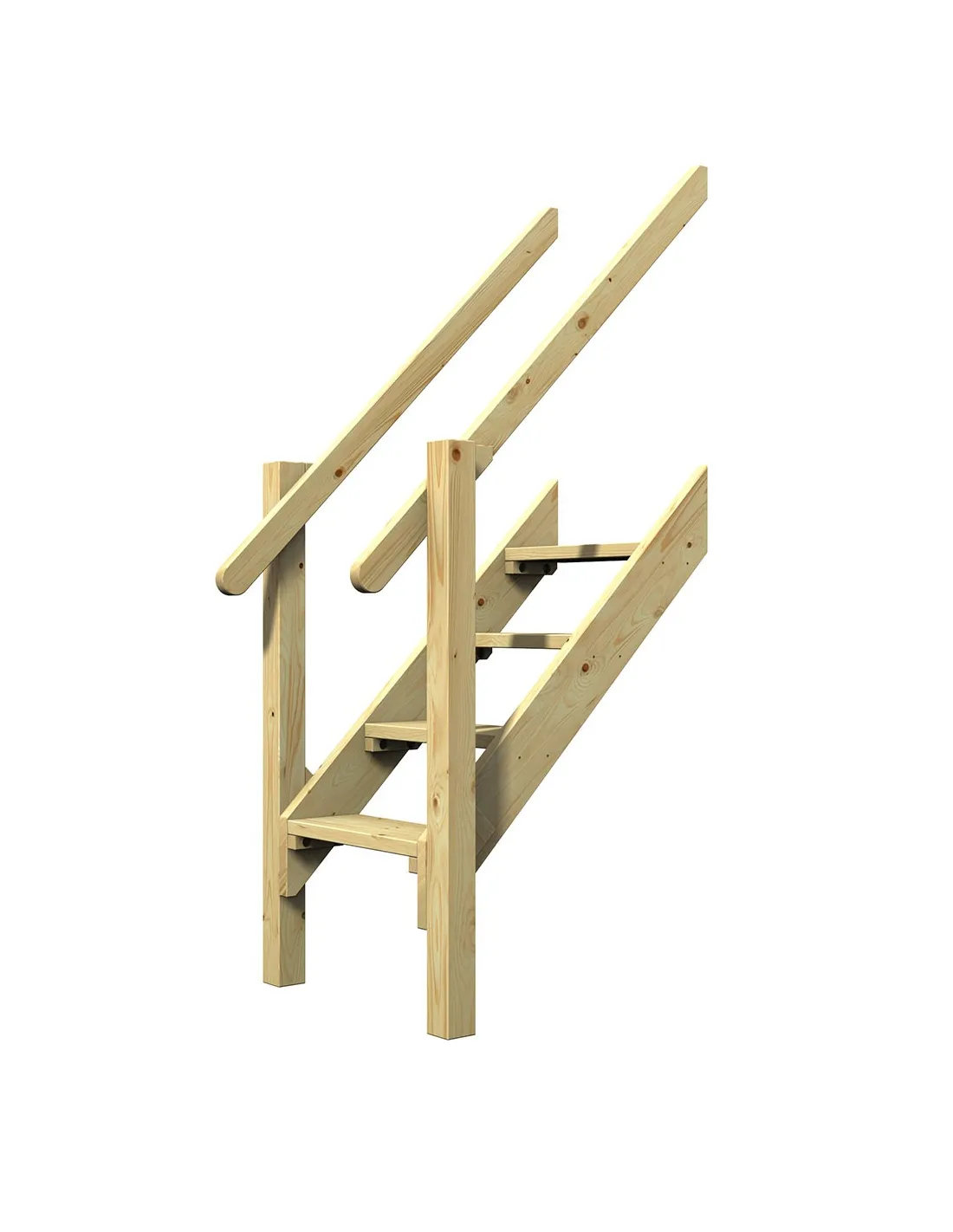 Escalier en bois à monter sur la tour de base Giga et la tour de base de jeux. Pour le montage, deux poutres de système supplémentaires sont nécessaires ainsi que deux ancrages au sol Safety Plus pour la fixation dans le sol.
