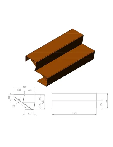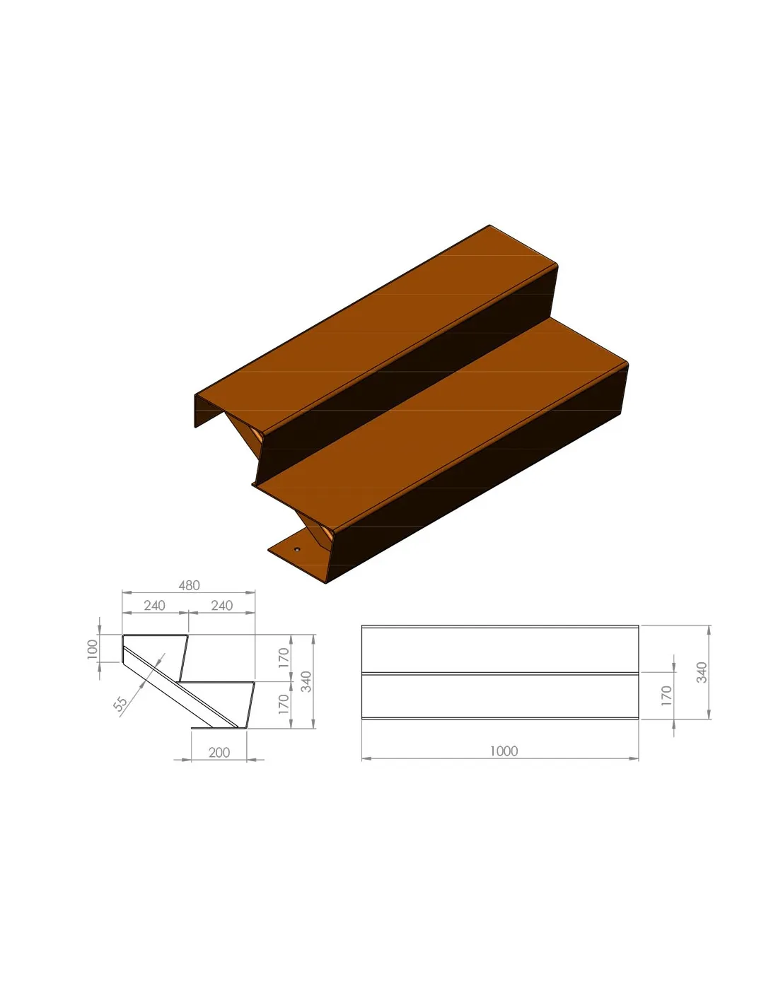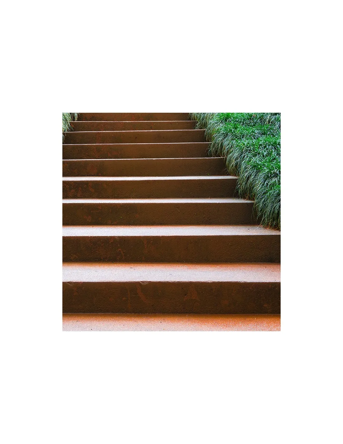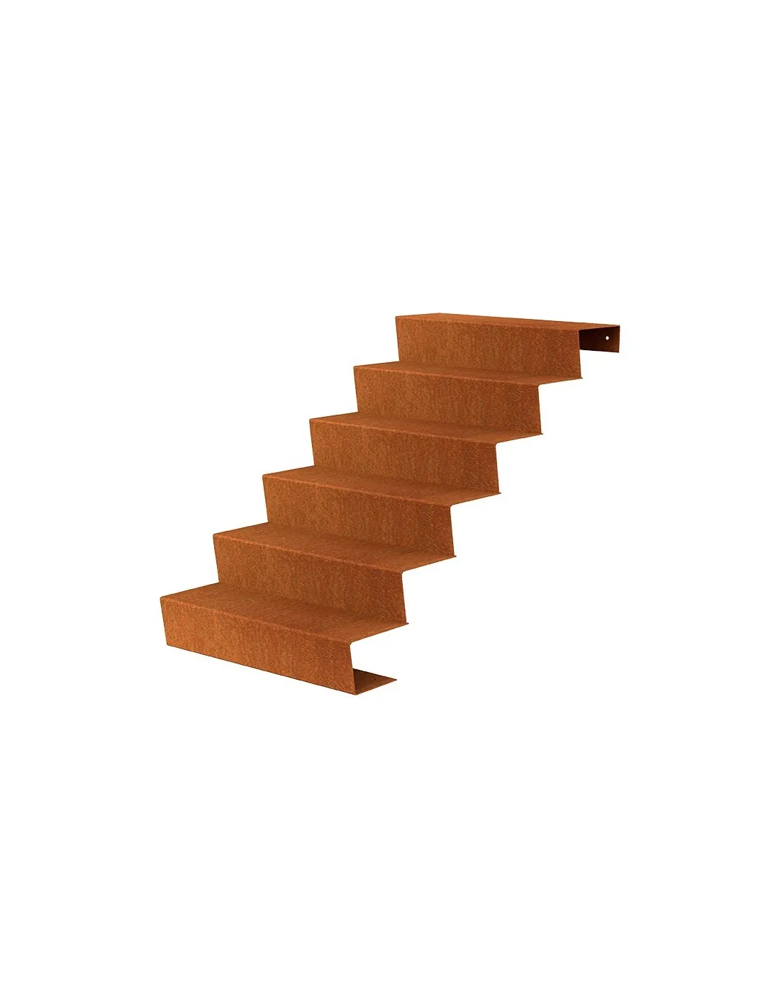 Escalier en Acier Corten disponible en 2 largeurs : 100 ou 125 cm. Épaisseur du Corten 3 mm et hauteur de la marche 17 cm.