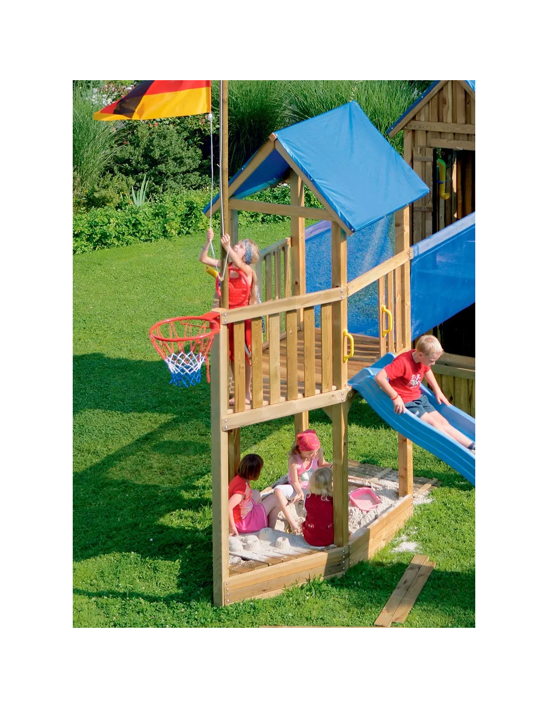 Le bateau de pirate transforme d’un seul coup les tours de jeux en petits ou grands navires de jardin. Cette construction stable est en bois résineux FSC®, traité à l’autoclave sans chrome. Pour le montage vous aurez besoin d’un kit d’ancrage au sol SAFETY. Complétez le bateau de pirate avec drapeaux adéquats. Pour agrandir la tour de jeux GIGA, vous aurez besoin du module « combi ».