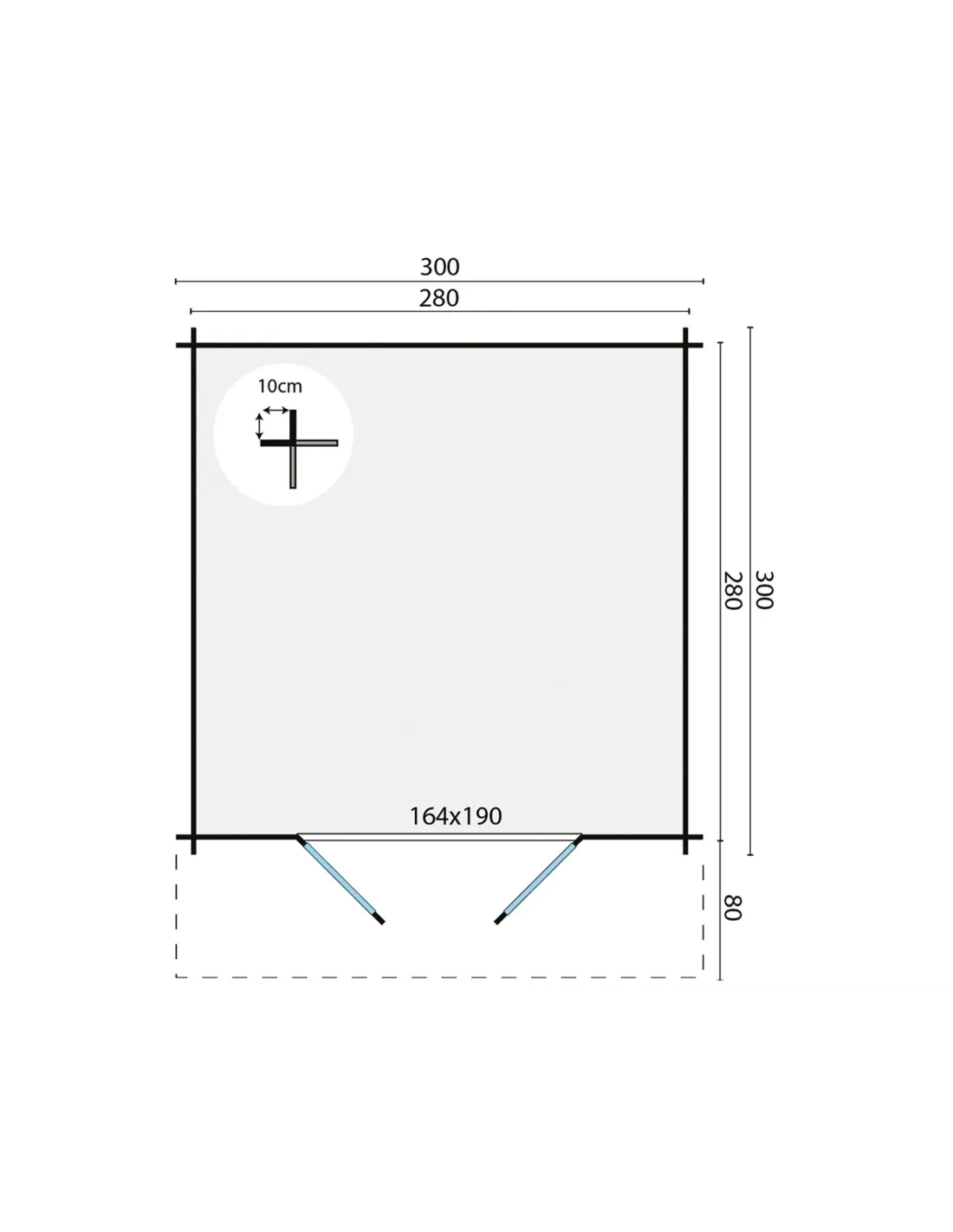 • Dimensions extérieures : largeur 3,00 m x profondeur 3,00