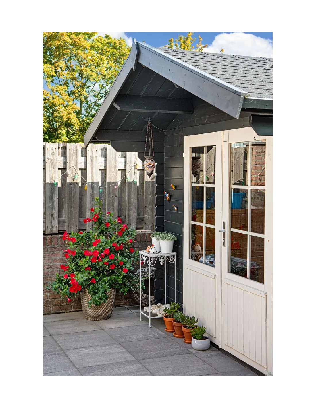exemple du joli cabanon de jardin avec double porte vitrée peint