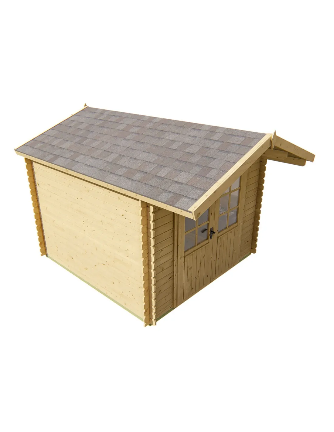 Ajoutez du charme et de la fonctionnalité à votre extérieur avec ce cabanon de jardin en sapin naturel, doté d'une élégante double porte vitrée et d'un auvent pratique de 80 cm. Idéal pour le rangement, un atelier ou même un espace détente.