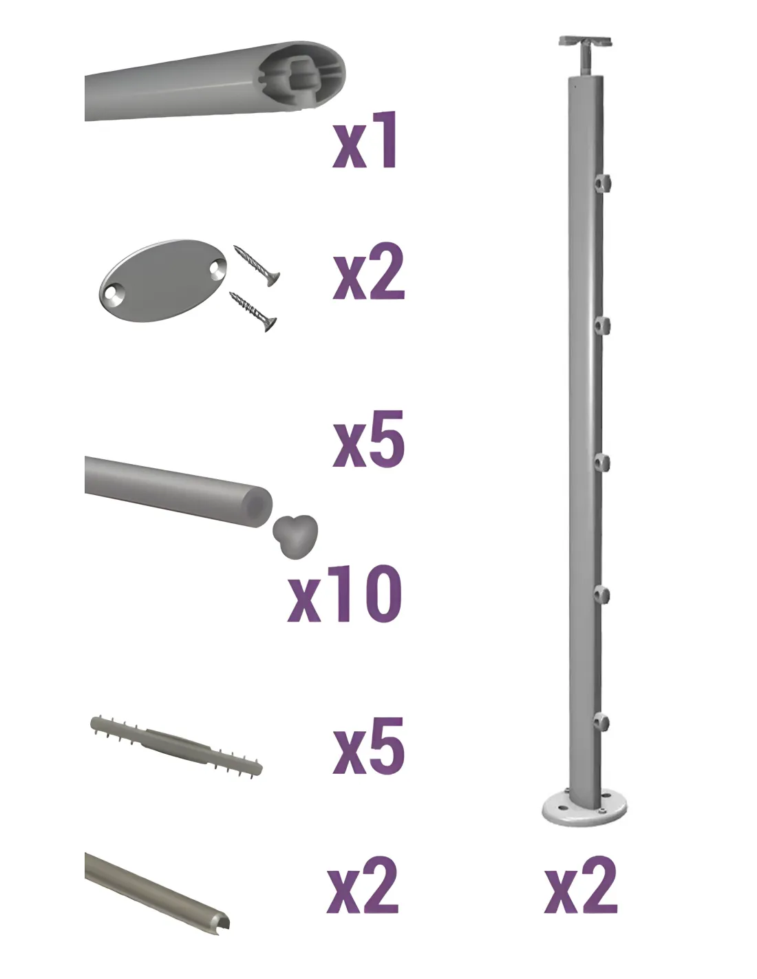 Contenu du kit garde-corps aluminium