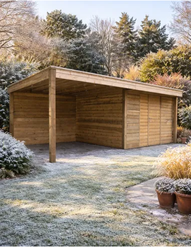 Conçu pour durer, cet abri de jardin moderne est fabriqué en Sapin Rouge du Nord traité et imprégné autoclave vert (C4), lui conférant une résistance exceptionnelle contre l'humidité, la pourriture et les insectes. Pour vous garantir une protection optimale et un montage sans tracas, le pack inclut une couverture de toiture en EPDM hautement étanche ainsi qu'une gouttière.
