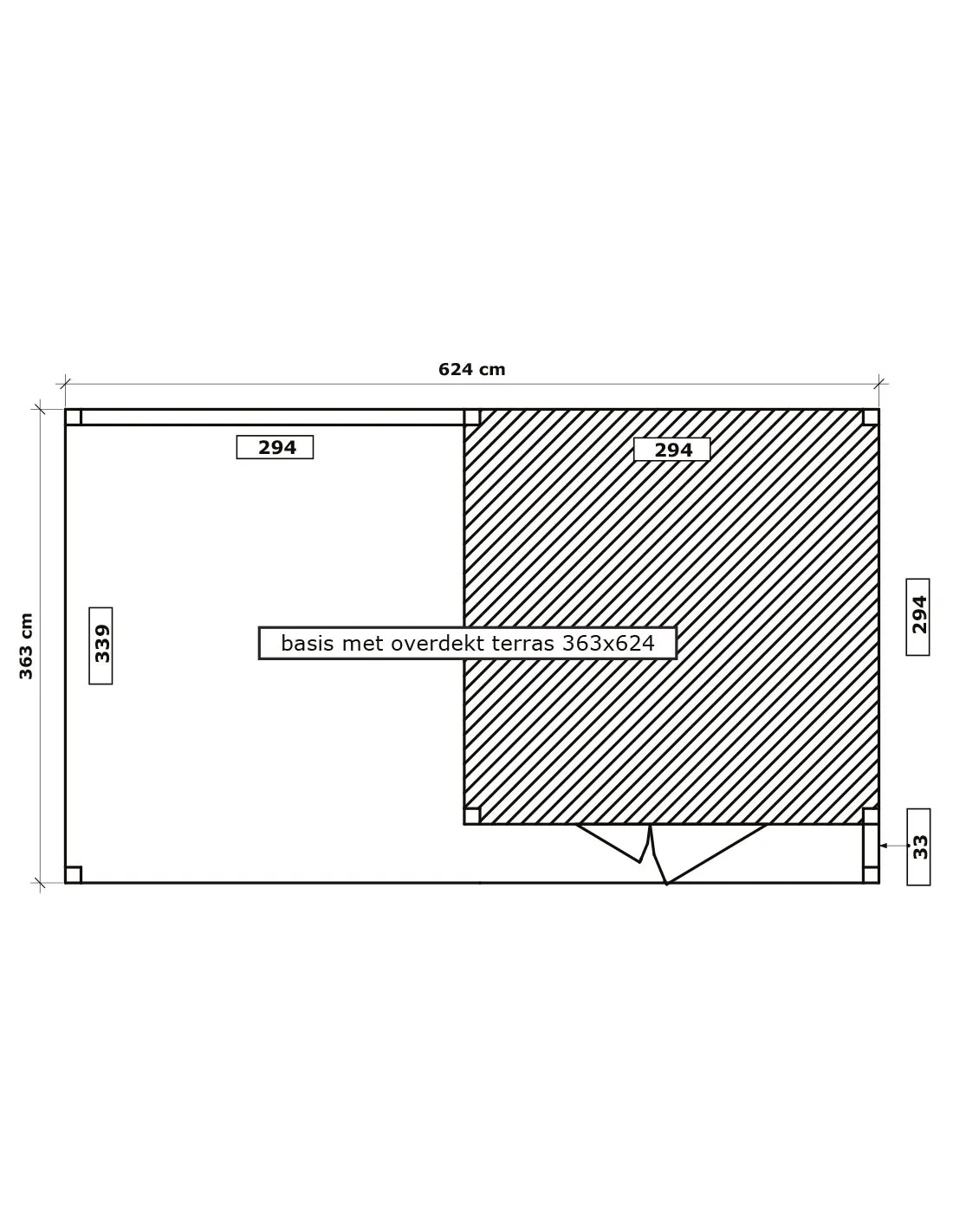 Dimensions hors tout : Largeur 6,24 m x Profondeur 3,63 m