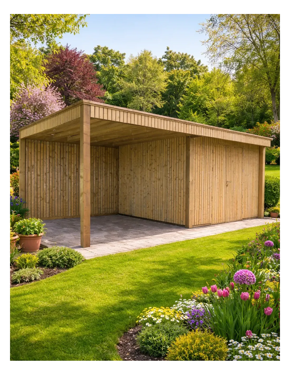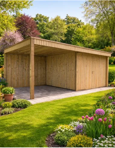Fabriqué en Sapin Rouge du Nord, ce modèle bénéficie d'un traitement par imprégnation autoclave vert de classe 4 (C4). Ce procédé garantit une protection optimale et durable contre l'humidité, la pourriture et les attaques d'insectes, vous assurant une excellente longévité sans entretien contraignant. L'abri est également livré avec une toiture haute qualité en membrane EPDM et des gouttières incluses pour une étanchéité absolue et une parfaite évacuation des eaux pluviales.