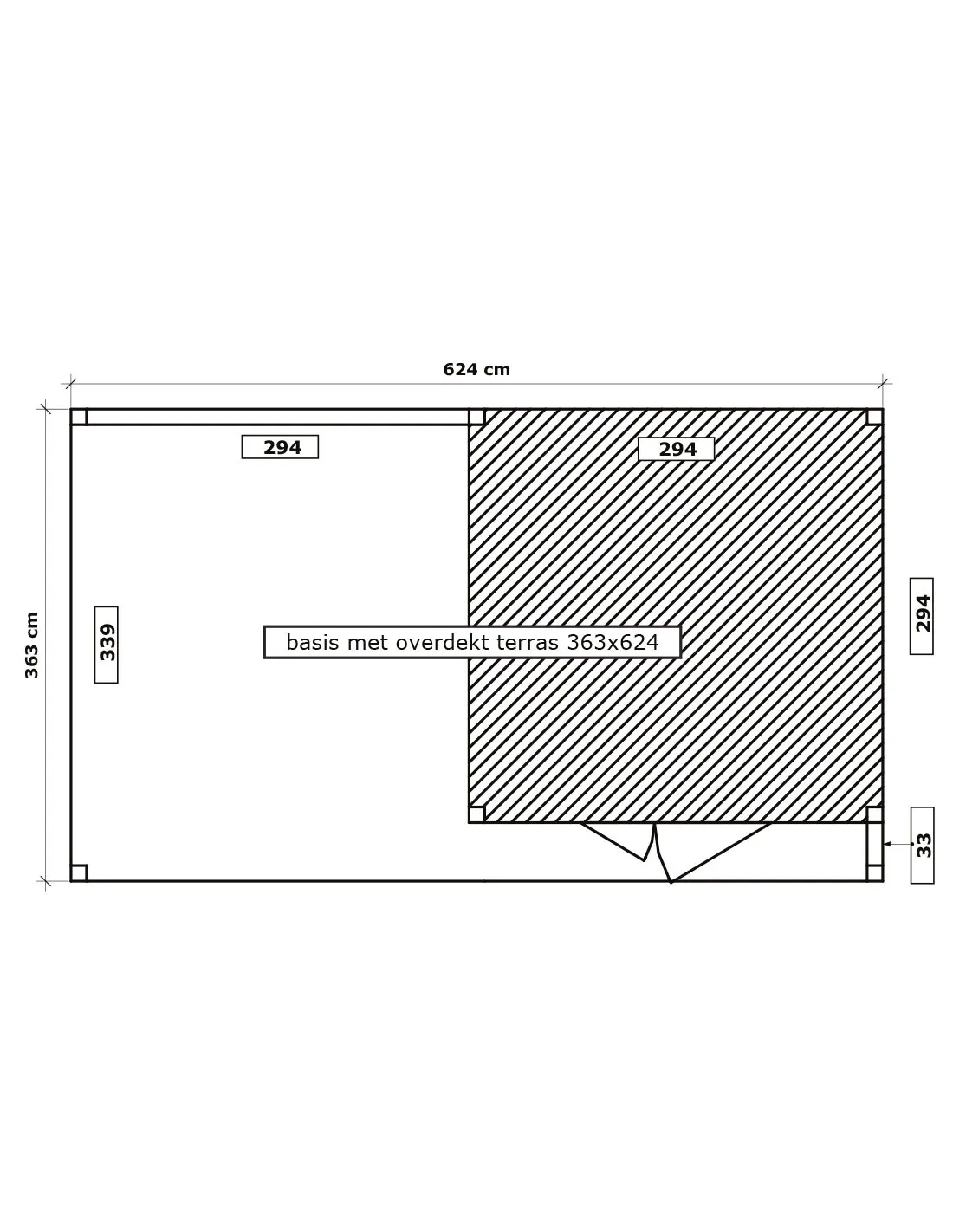 Dimensions hors-tout : 624 x 363 cm (Largeur : 6,24 m / Profondeur : 3,63 m)