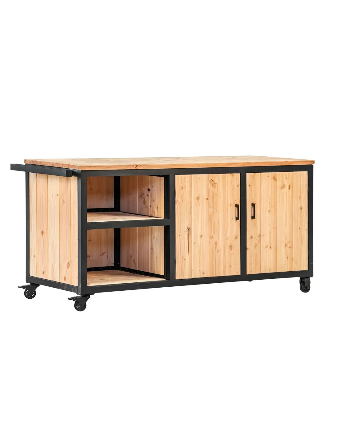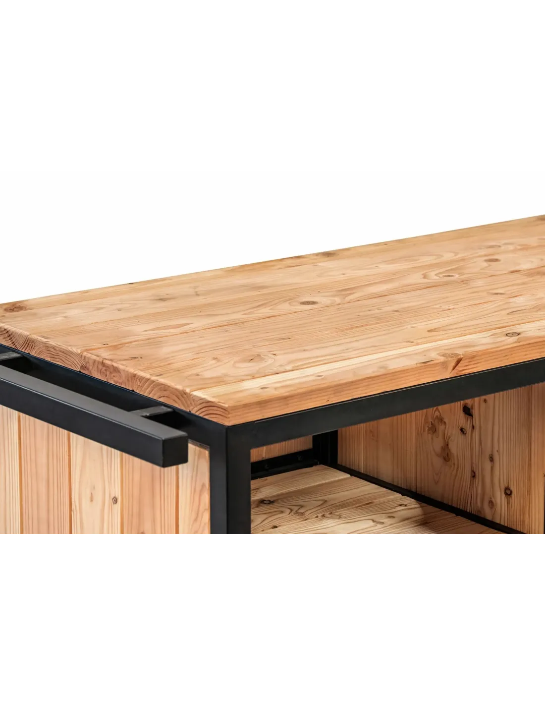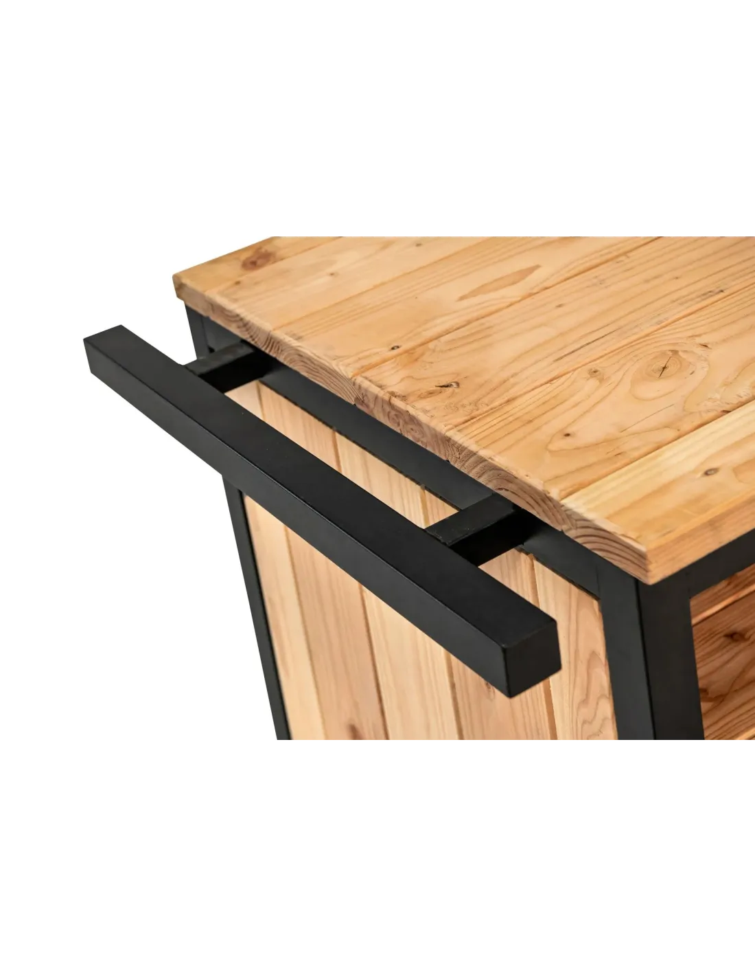 Matériaux de qualité : Construit principalement en Douglas, ce meuble de cuisine combine bois et acier pour une esthétique à la fois rustique et moderne.