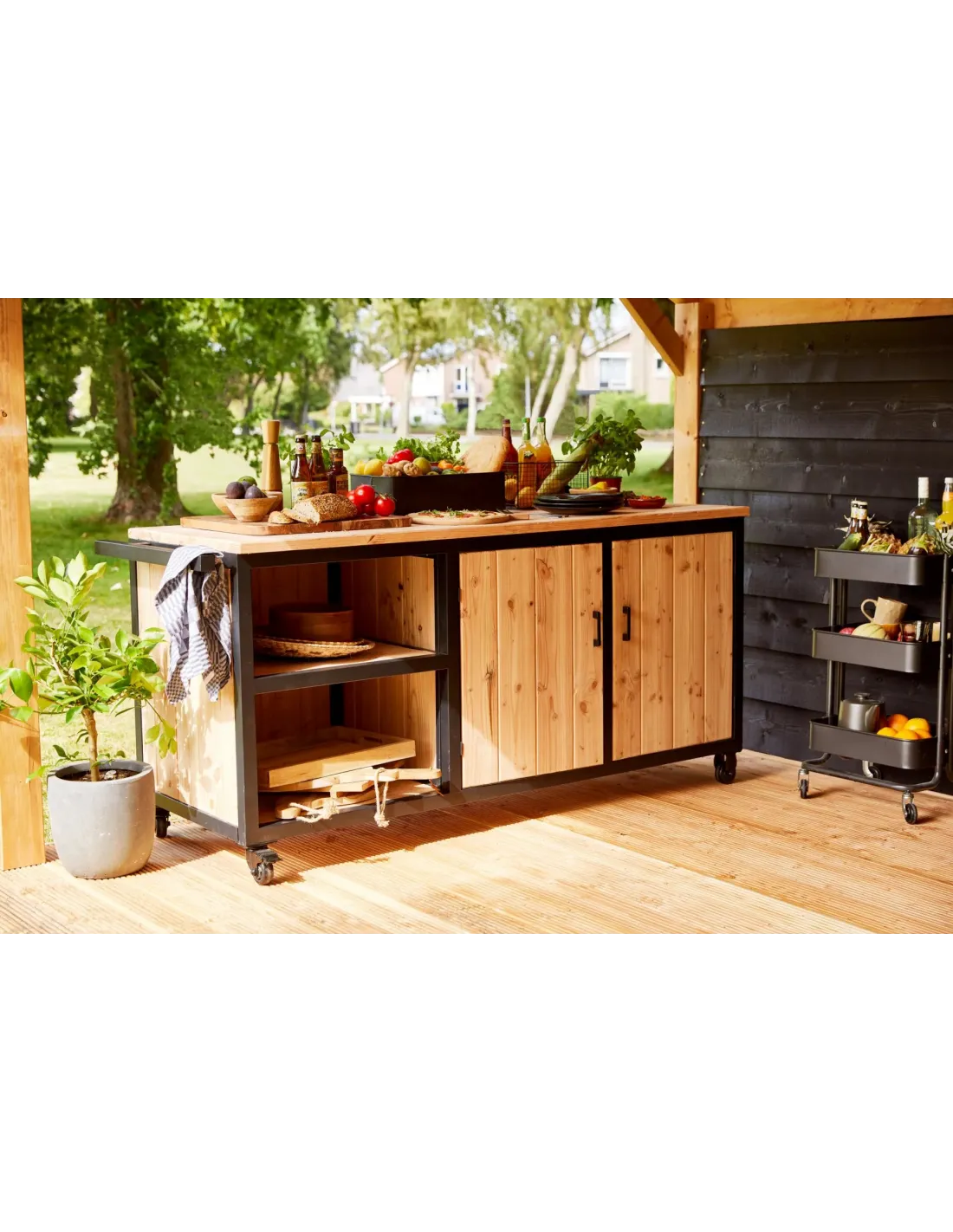 Meuble de cuisine extérieure en acier et douglas