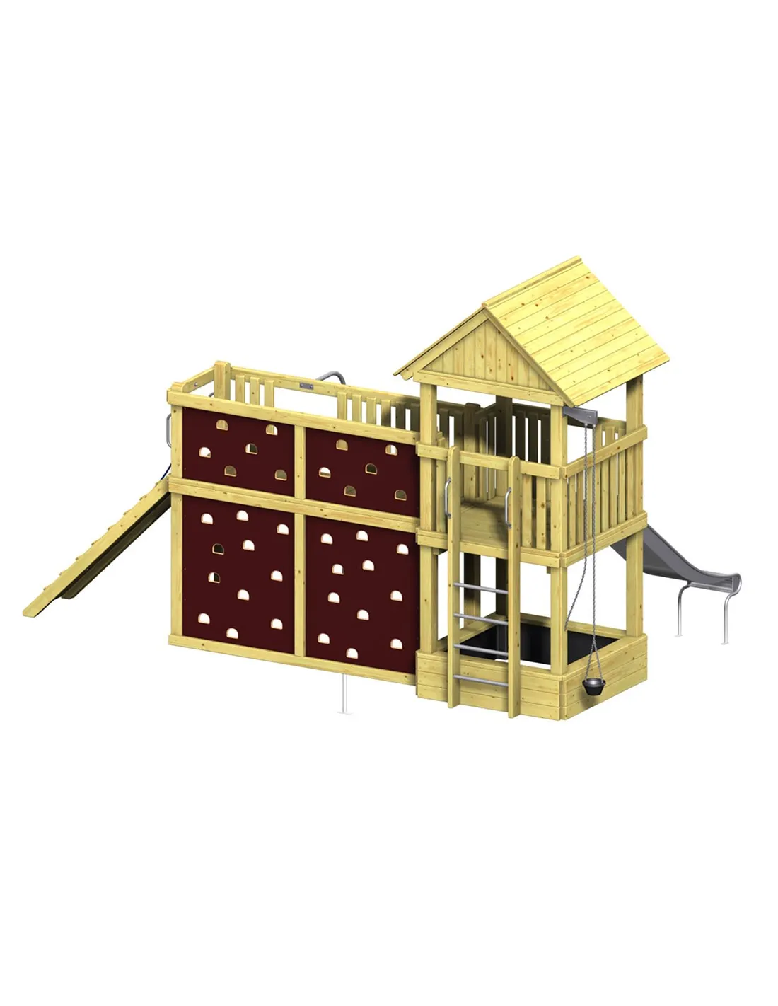 L'aire de jeux publique pour enfant n°6 est un kit complet pouvant recevoir plusieurs extensions au choix. Elle comprend: