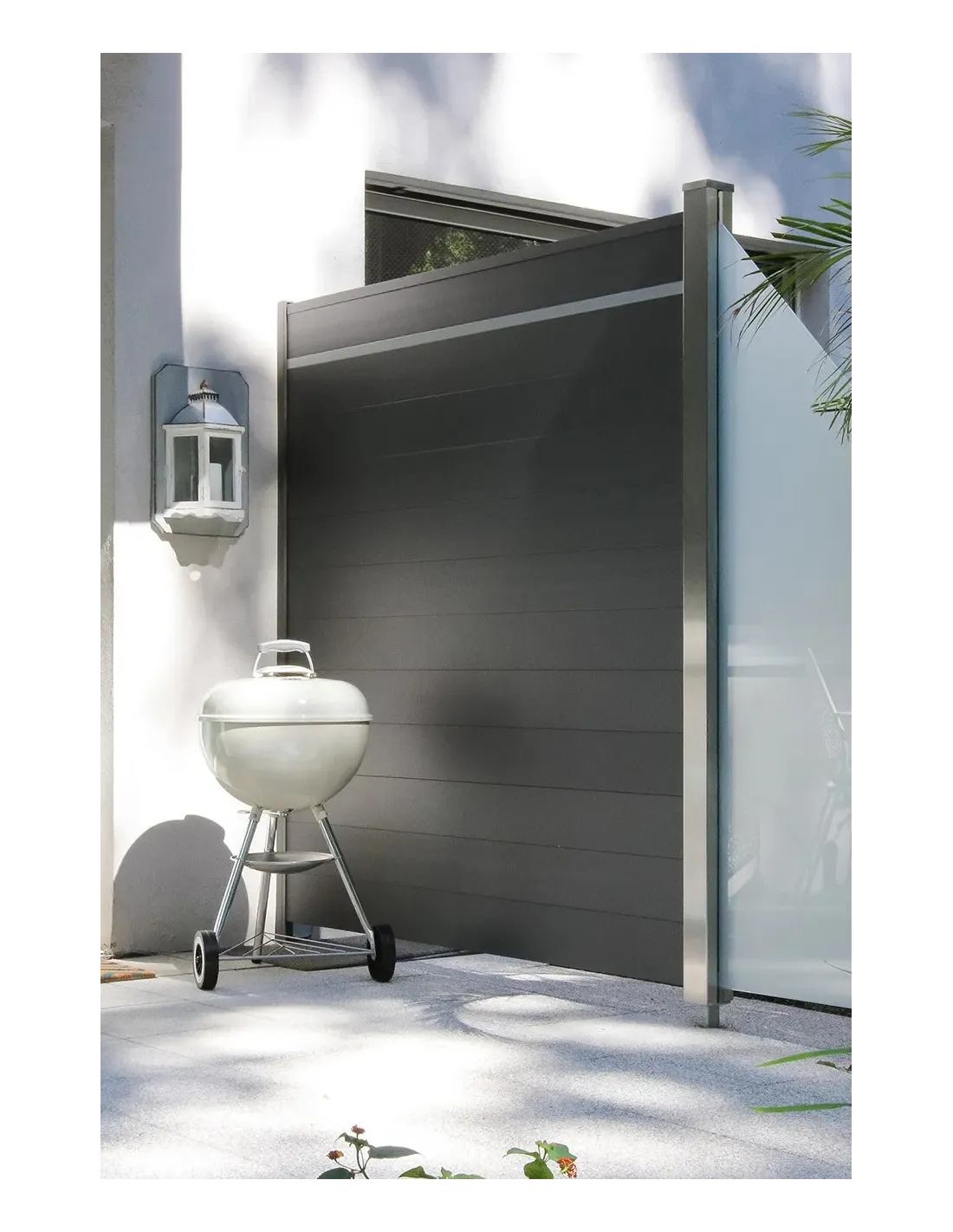 Optez pour la palissade en aluminium Plus est disponible en différentes couleurs pour un design moderne, une structure légère mais durable, et une finition haut de gamme. Avec ses lames thermolaquées remplies de mousse isolante, cette palissade allie esthétique contemporaine et robustesse remarquable.