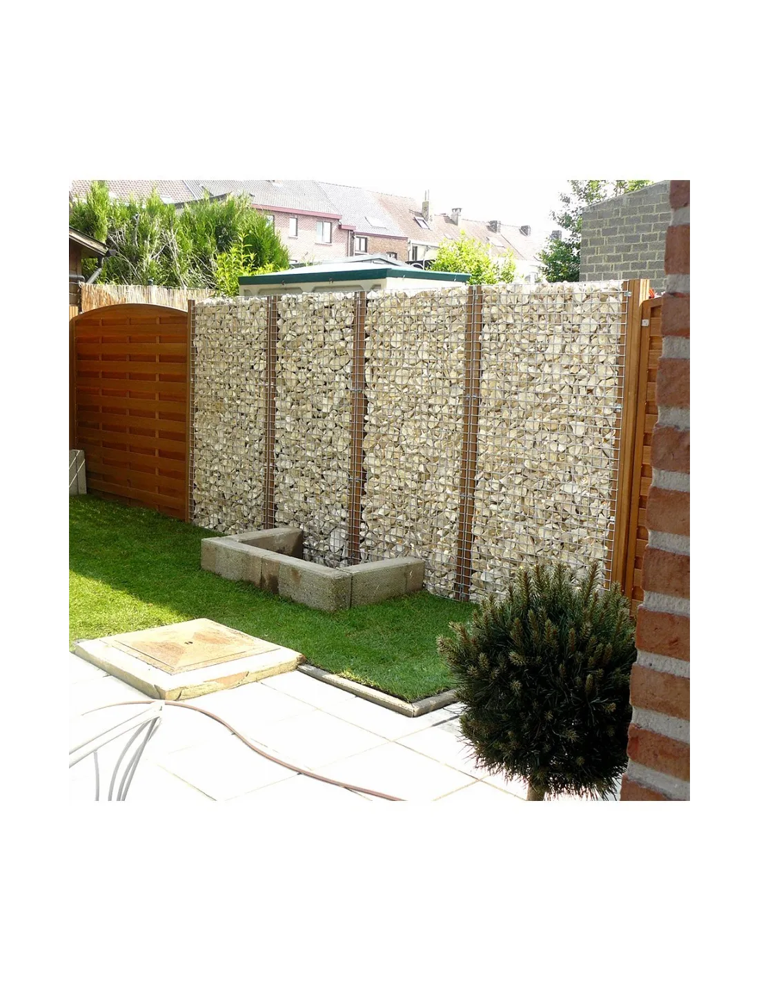 Gabions de 180 x 90 cm pouvant être placés les uns au-dessus des autres afin de réaliser une séparation de jardin ou de parking.