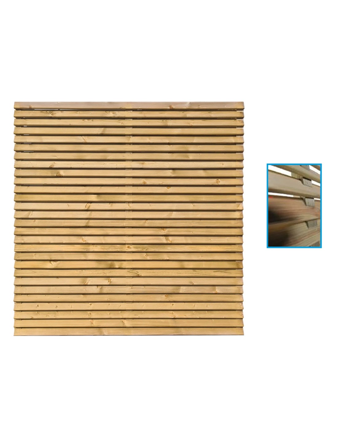 Incliné comme des volets, cette palissade en lattes ou panneau de jardin est disponible sur une largeur de 180 cm.