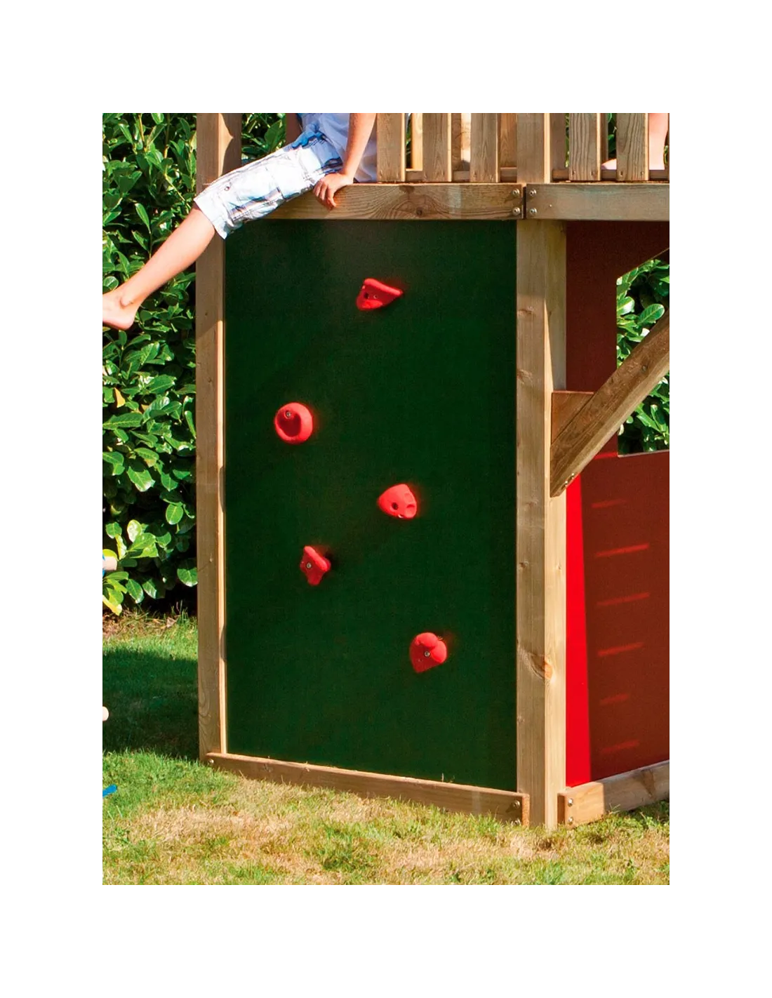 La lasure utilisée est spécialement pour les jeux d’enfants et sans danger pour l’environnement. Lors de la livraison des jeux d’enfants la lasure est encore très intensive, mais elle va s’éclaircir sous l’effet du rayonnement UV. Sans entretien, les parois restent lisses.