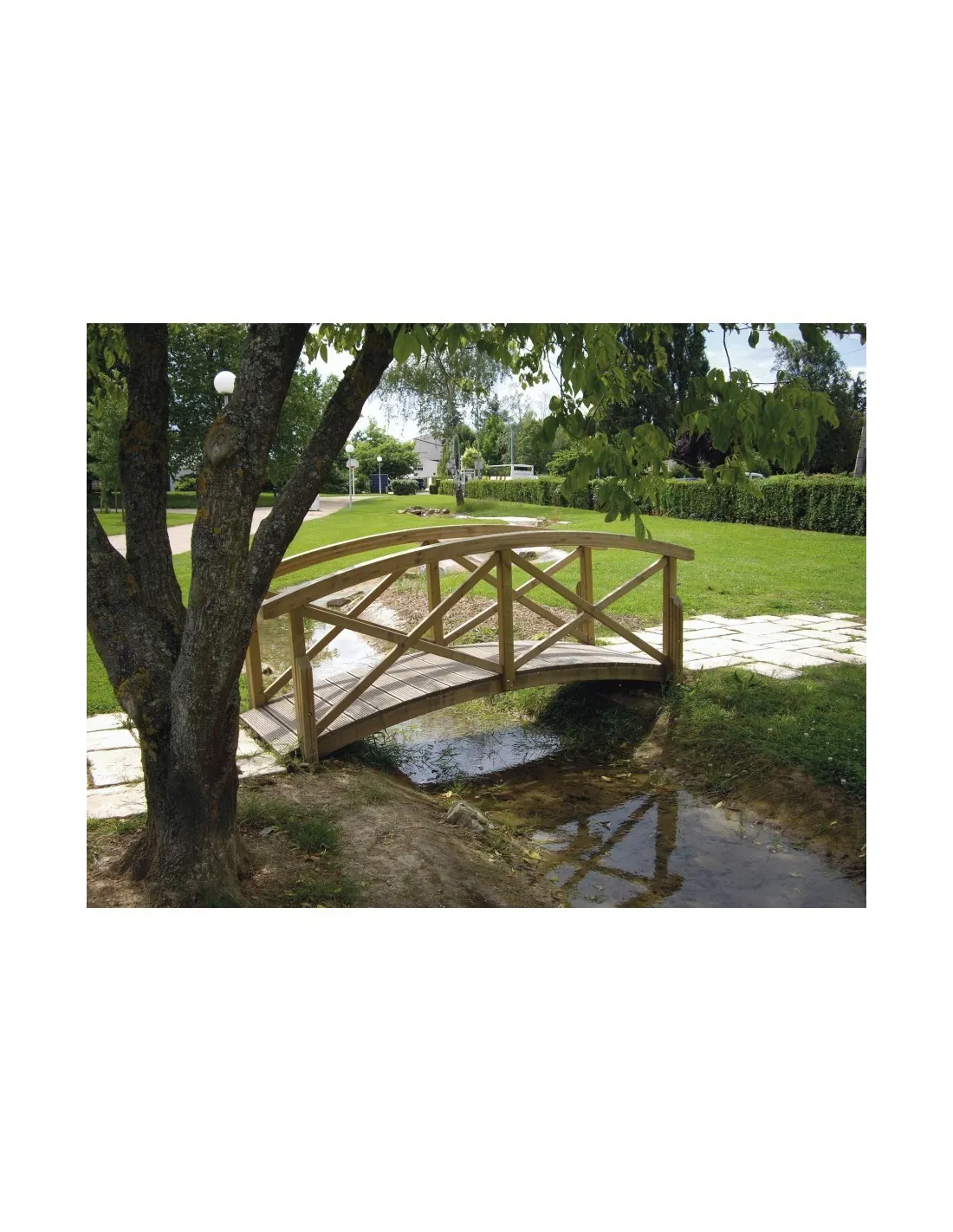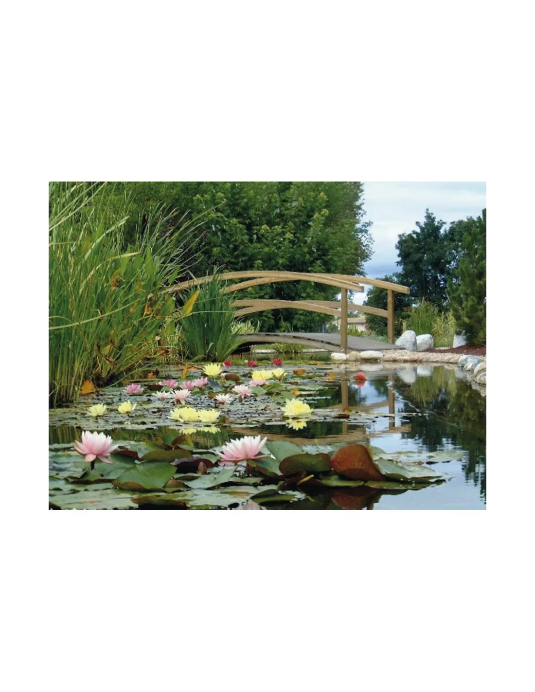 Petit pont passerelle de jardin courbée pour plan d'eau.