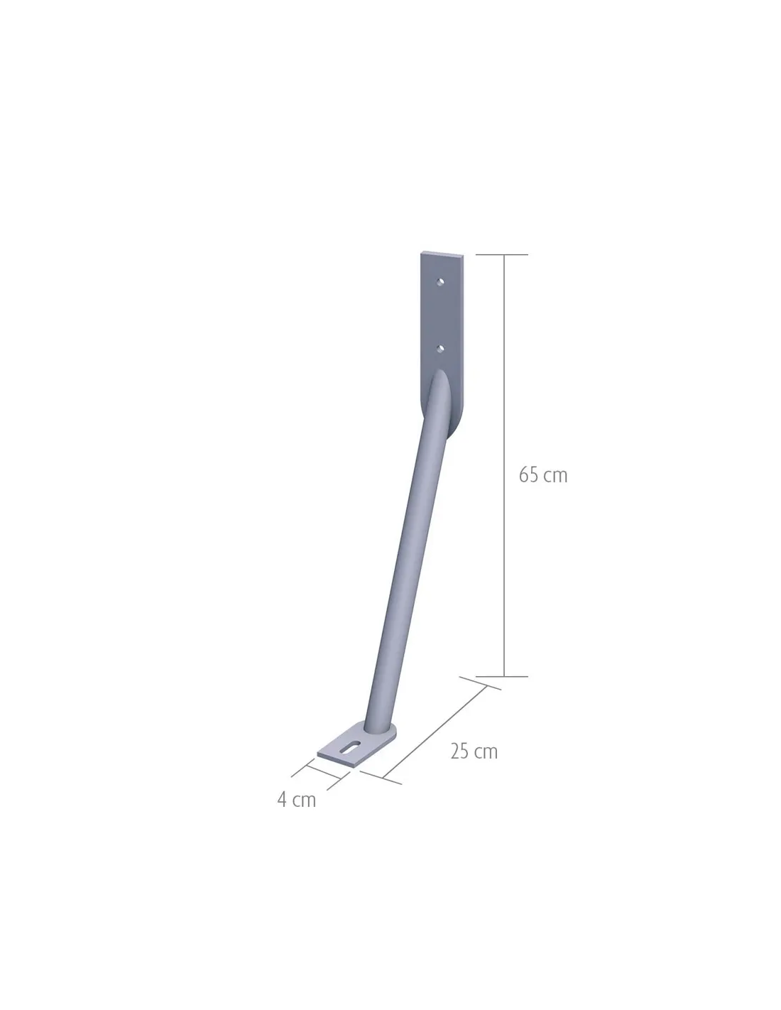 Tube rond galvanisé (H 65 x P 25 cm), muni à chaque extrémité d'une platine rectangulaire. Idéal pour maintenir le poteau en cas de vent fort ou de tempête.